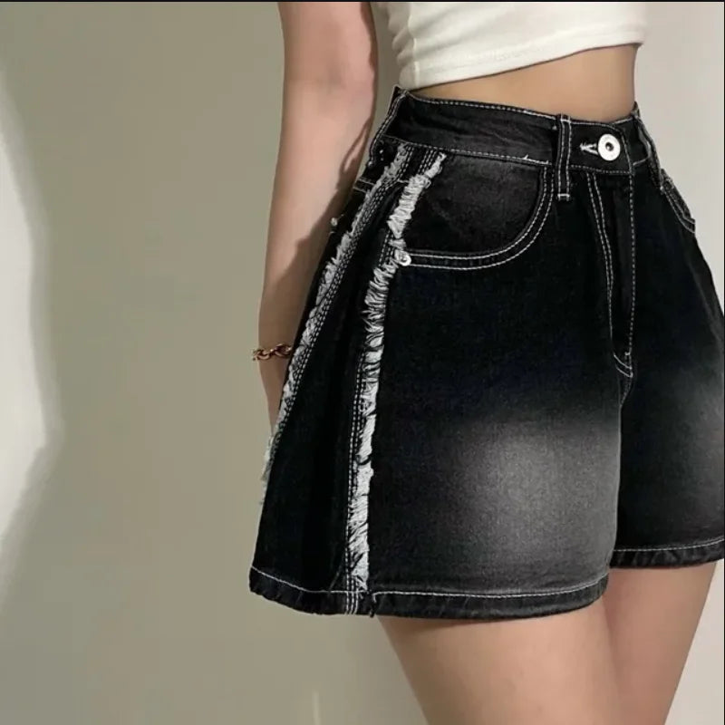 Purpdrank Vintage High Waist Women's Denim Shorts Tassel 2025 New Single Button Casual Loose Wide Leg Short Jeans Pants Female