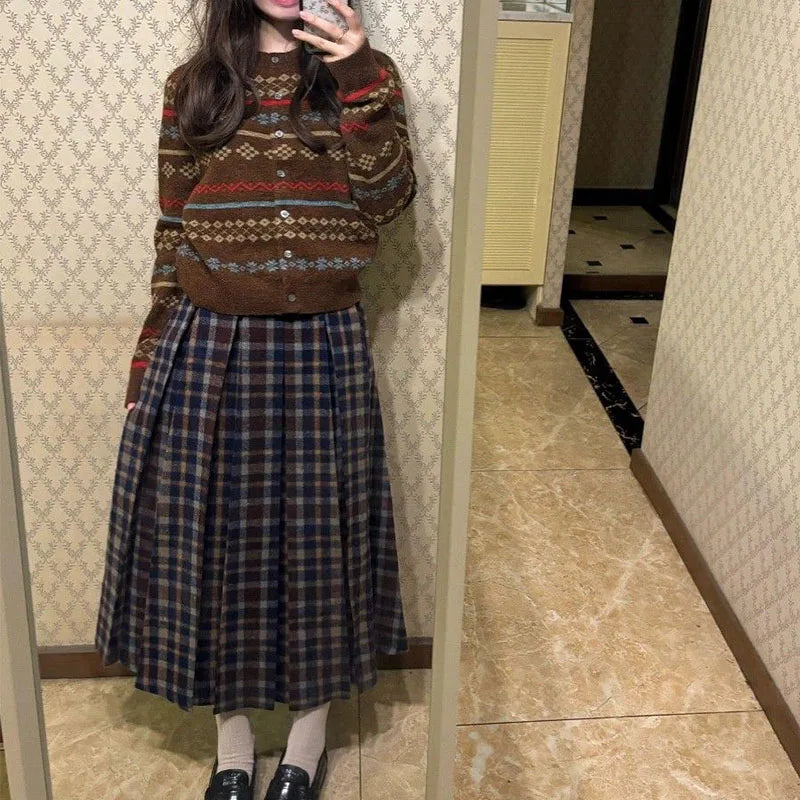 Purpdrank Vintage Jacquard Sweater Women Autumn Winter Round Neck New Thicken Korean Paisley Ingle-breasted Folk Knitted Cardigans Tops