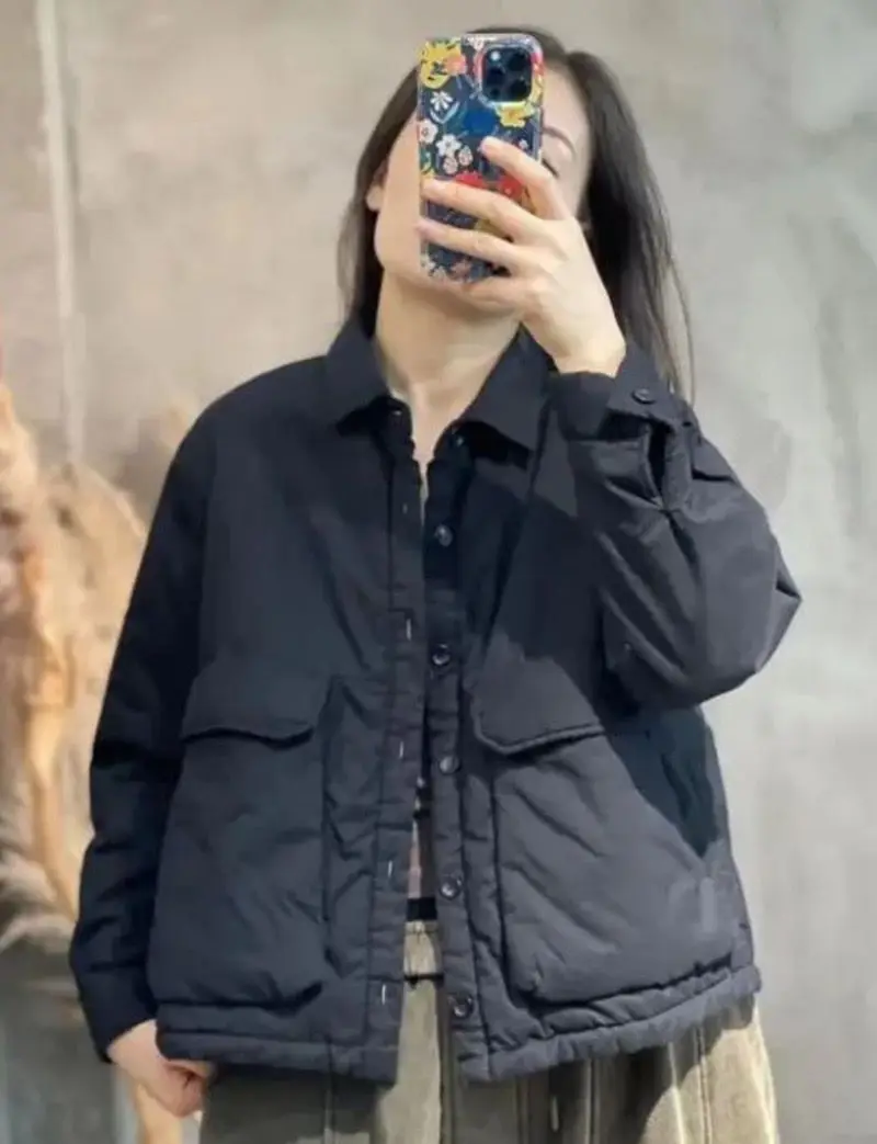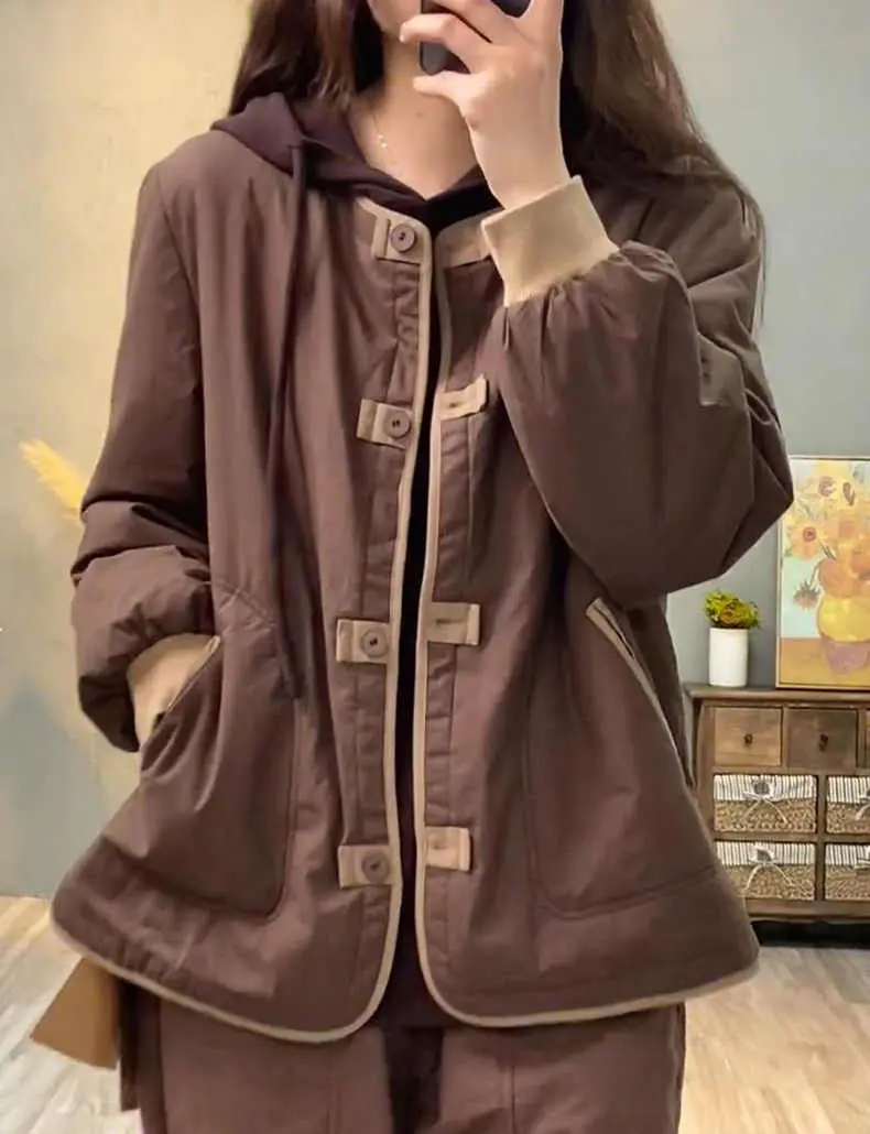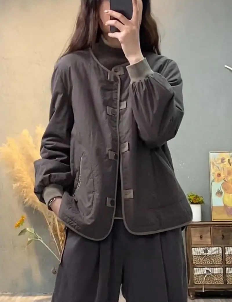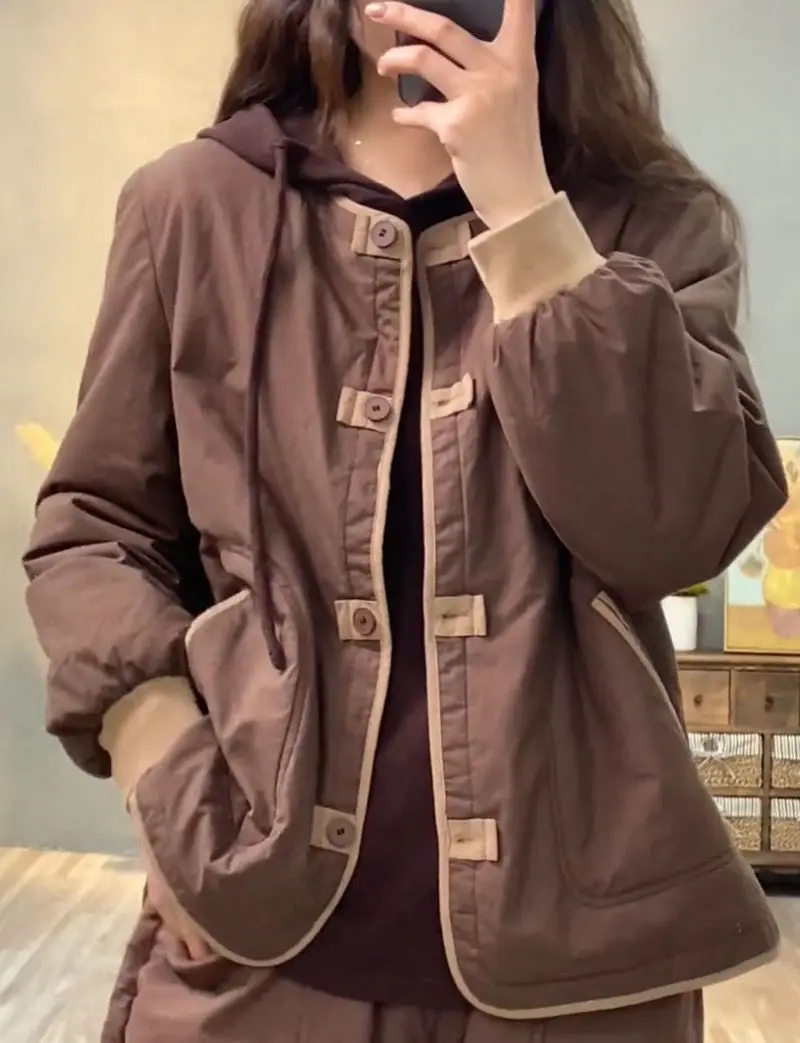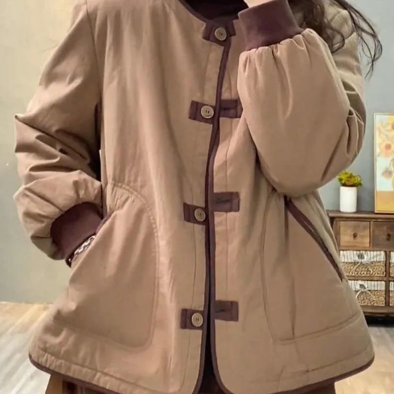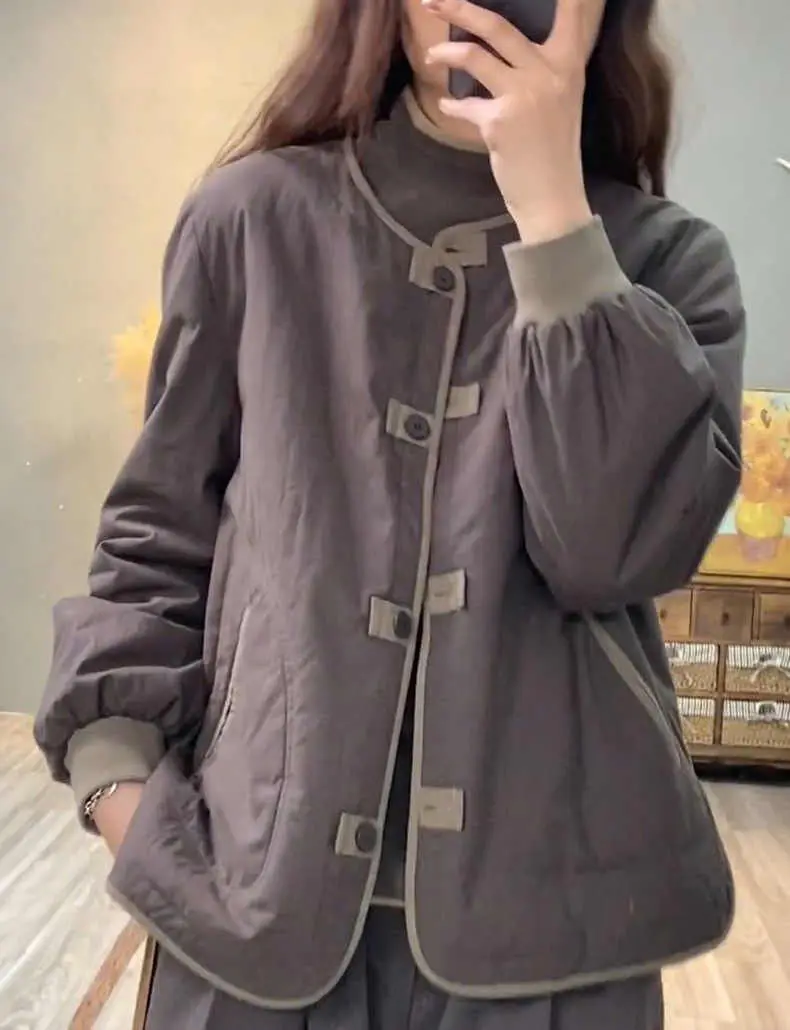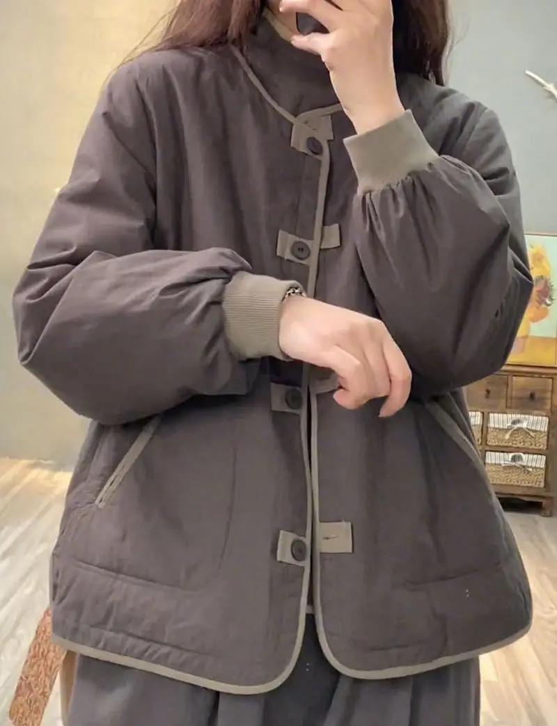 Purpdrank Vintage Patchwork Cotton-padded Jacket Winter Women's Clothing Warm Parkas Long Sleeve Coat Single-breasted Pockets Short Tops