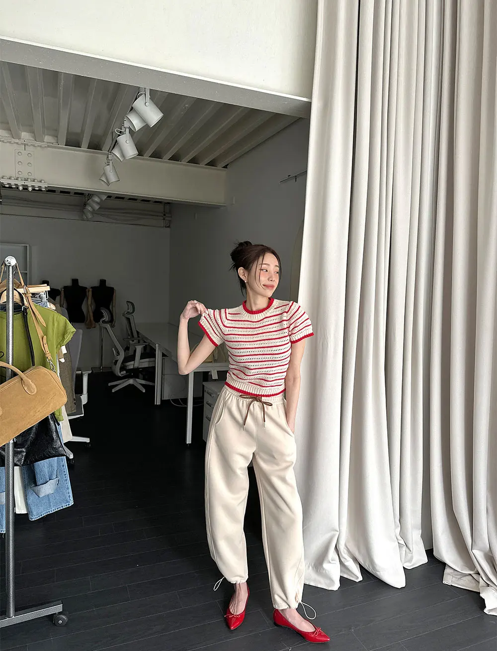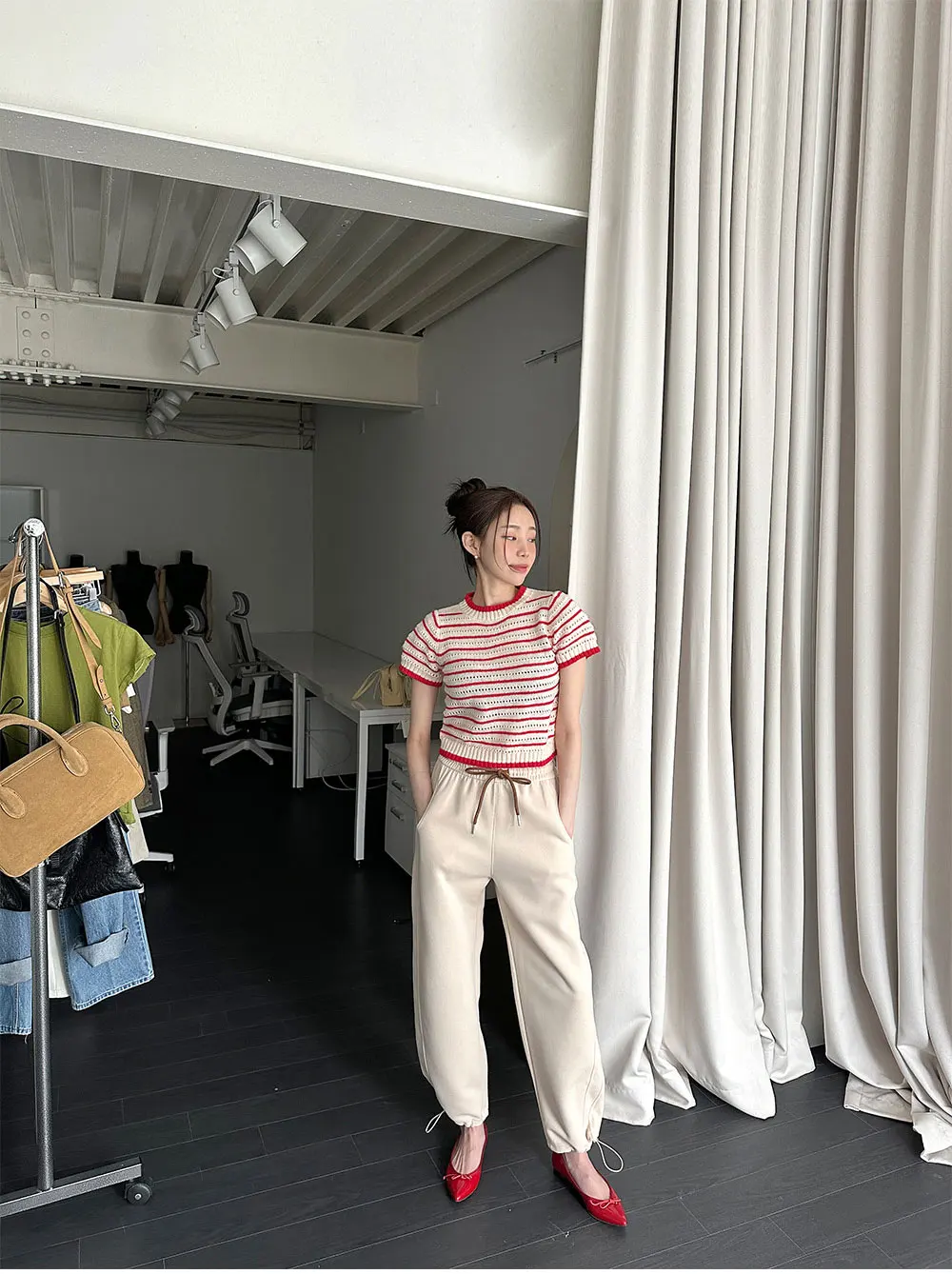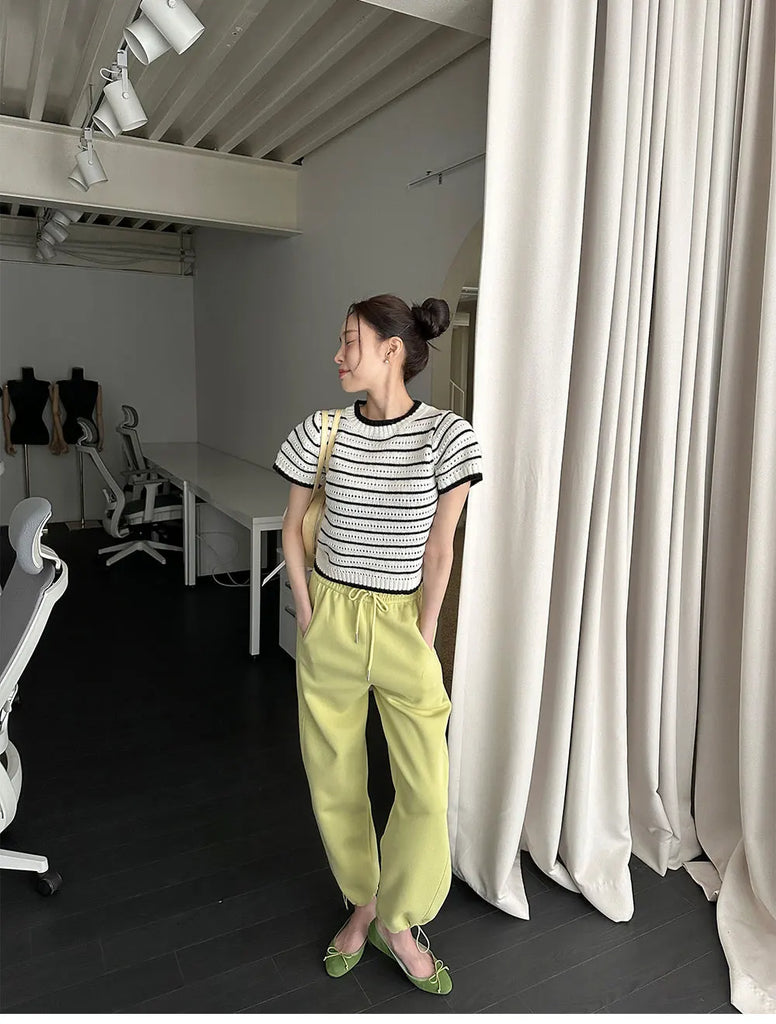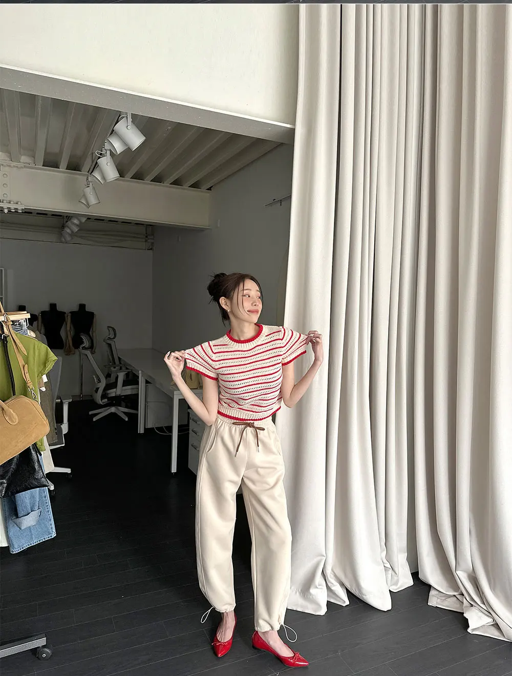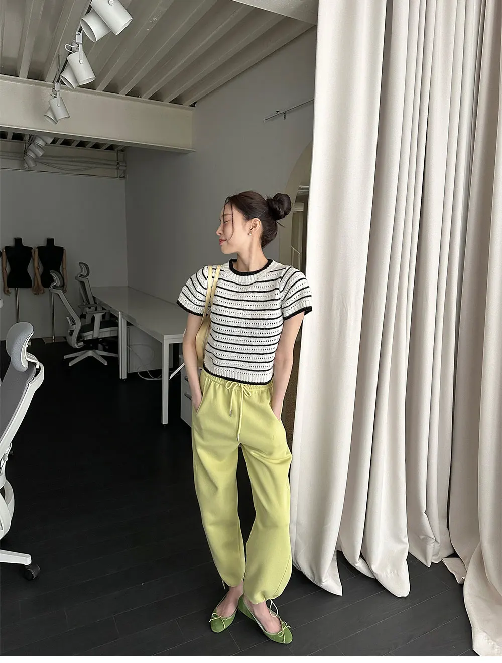 Purpdrank Vintage Striped Women's Knitted T-shirts 2025 New Summer Casual Loose O-neck Hollow Out Knitwear Short Shirts Top Female