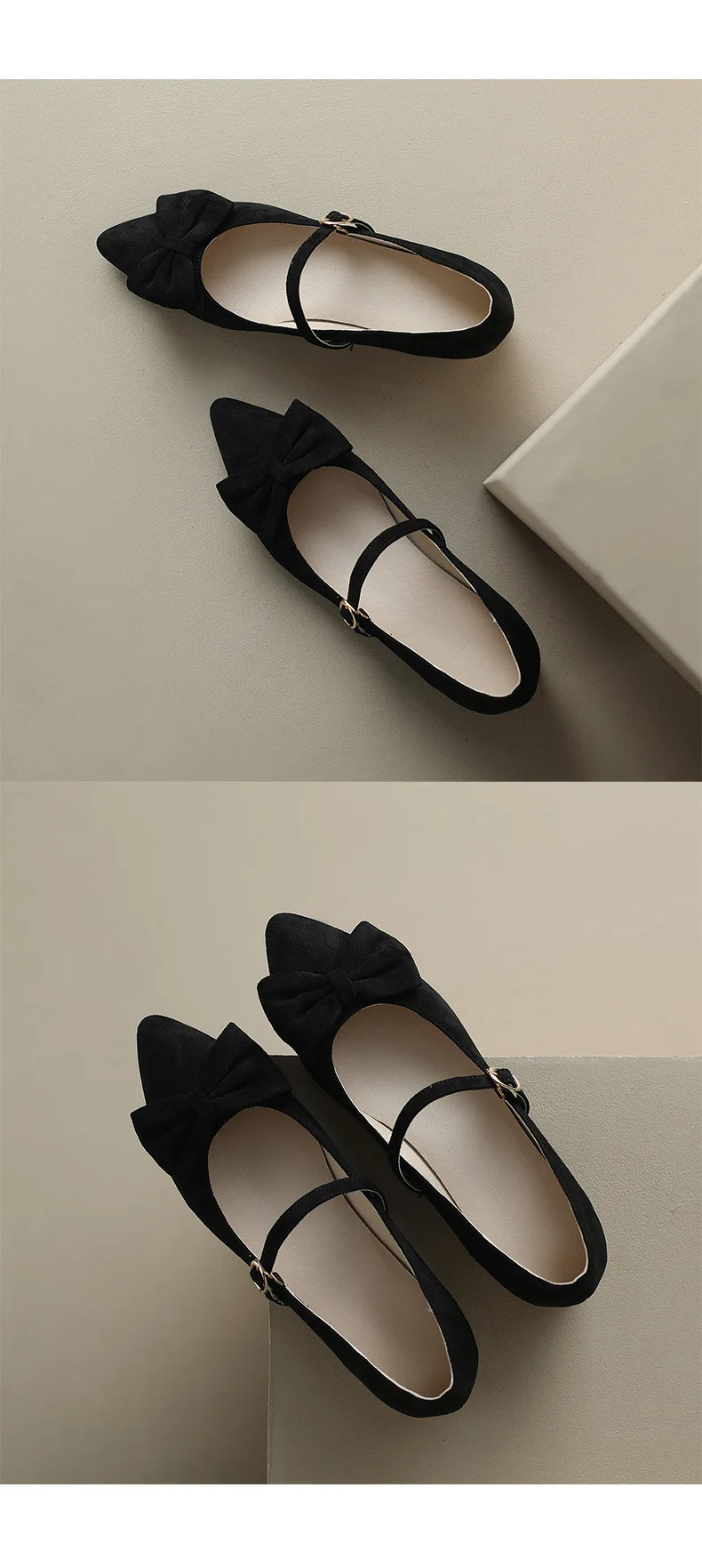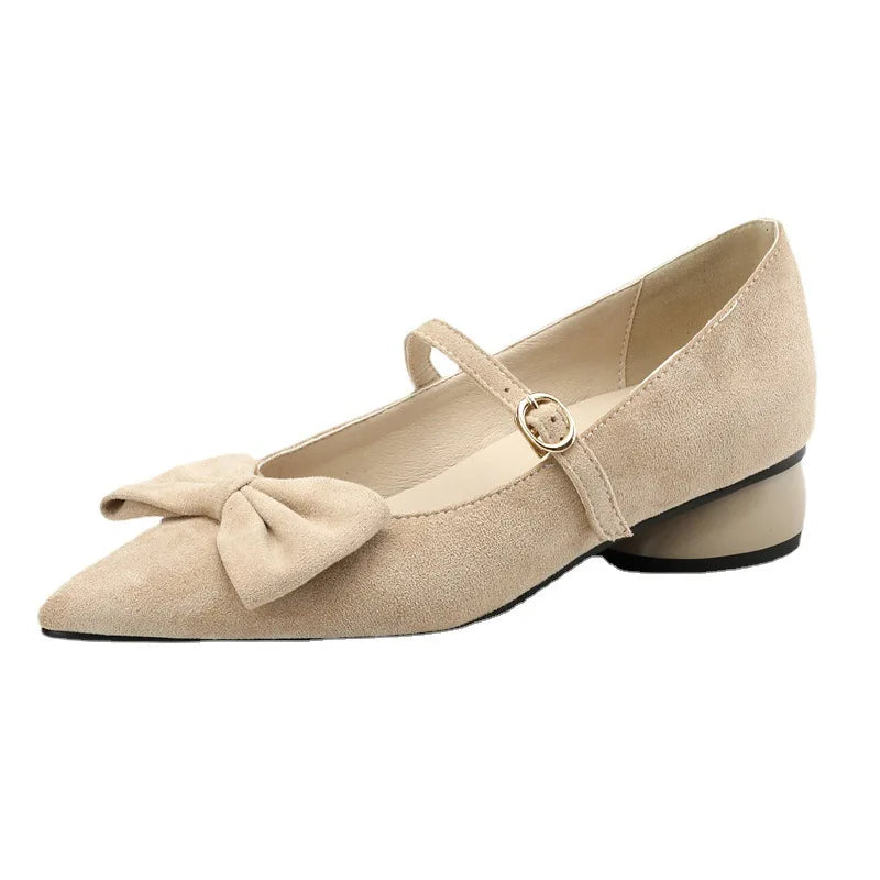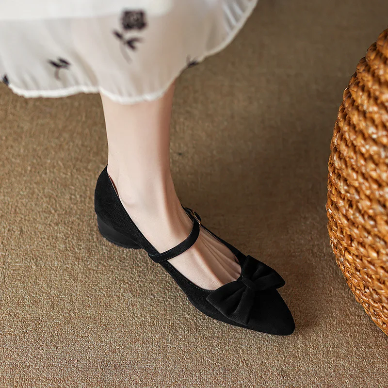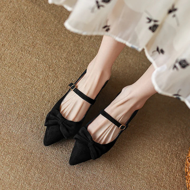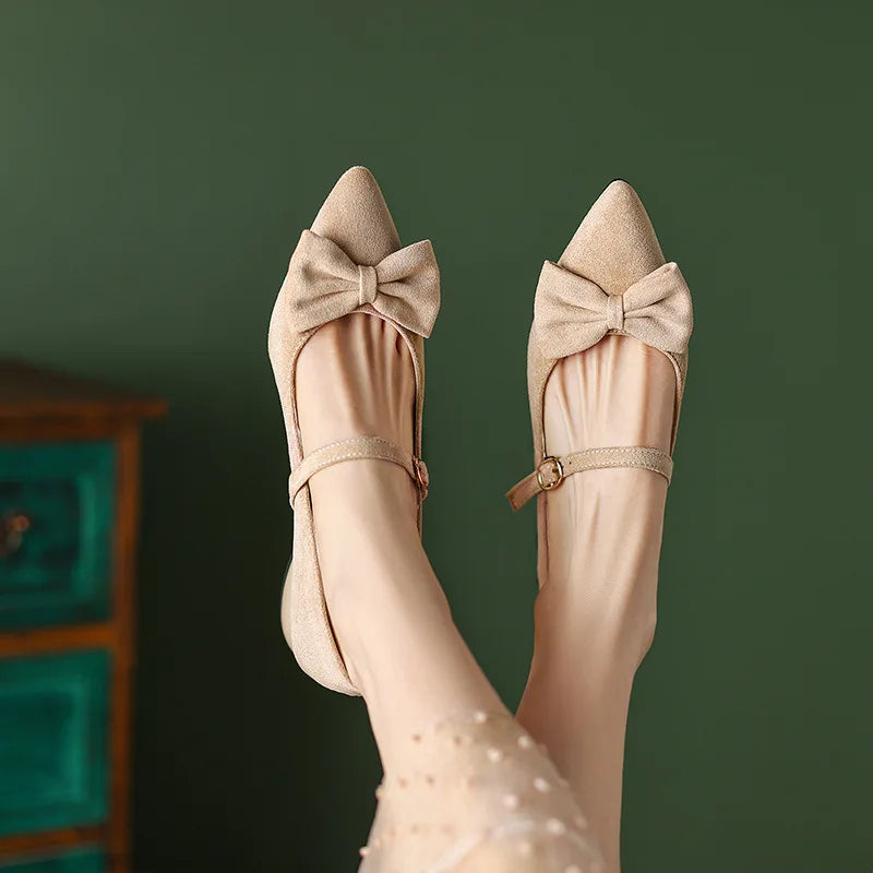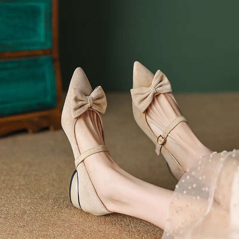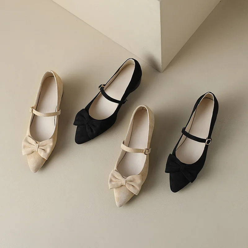 Purpdrank Women Low Heels Bow-Knot Pointed Toe Casual Female Sneakers Flat Shoes Butterfly Dress Big Size Rubber PU Buckle Strap Butterfly