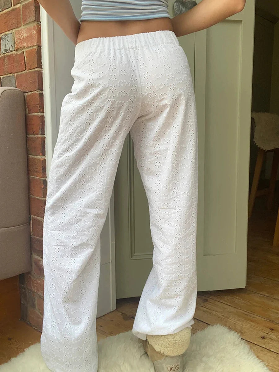Purpdrank Women Summer Kawaii Y2K Eyelet Embroidery Wide Leg Pants Elastic High Waisted Palazzo Loungewear Pants Causal Loose Trousers