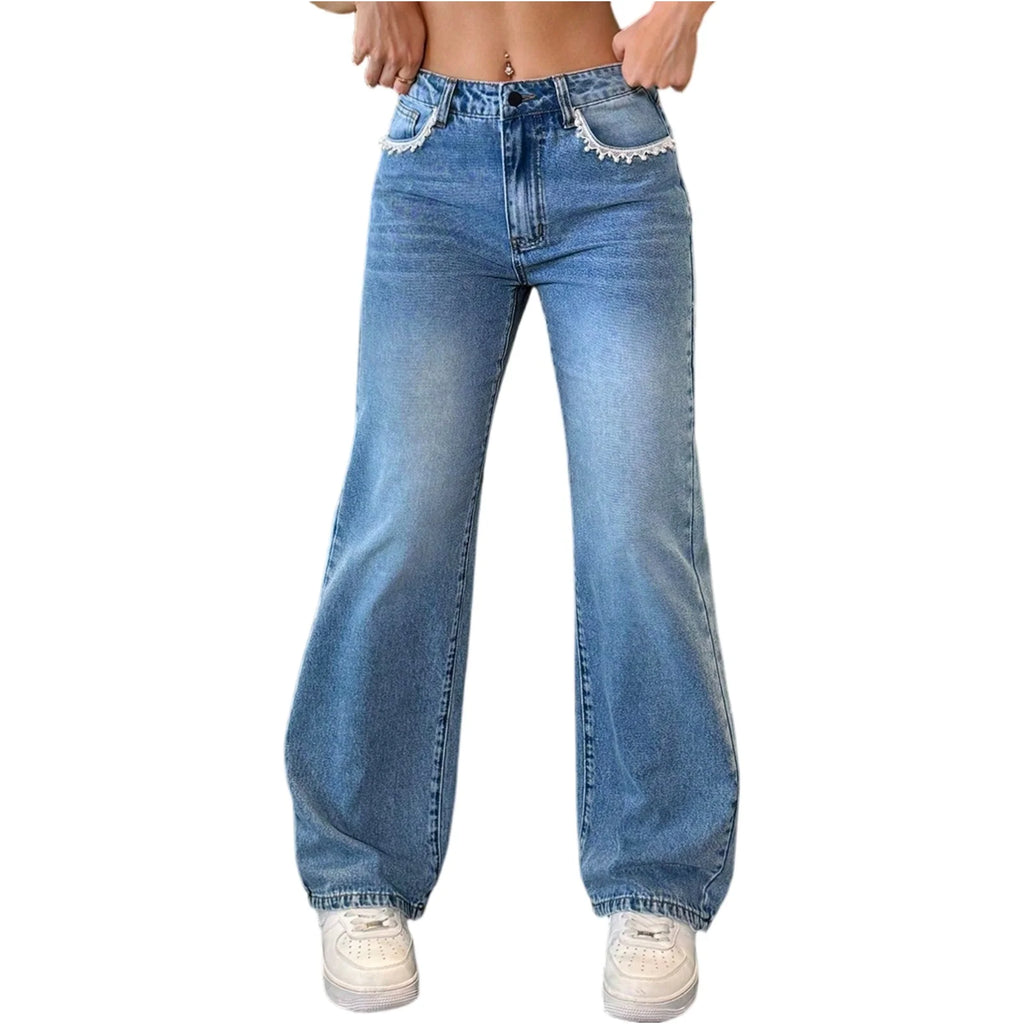 Purpdrank Women Wide Leg Jeans Tassel Fashion Plus Size Ladies Jeans Slimming Fit Flared Denim Pants Mid-Waist Flare Jeans Streetwear