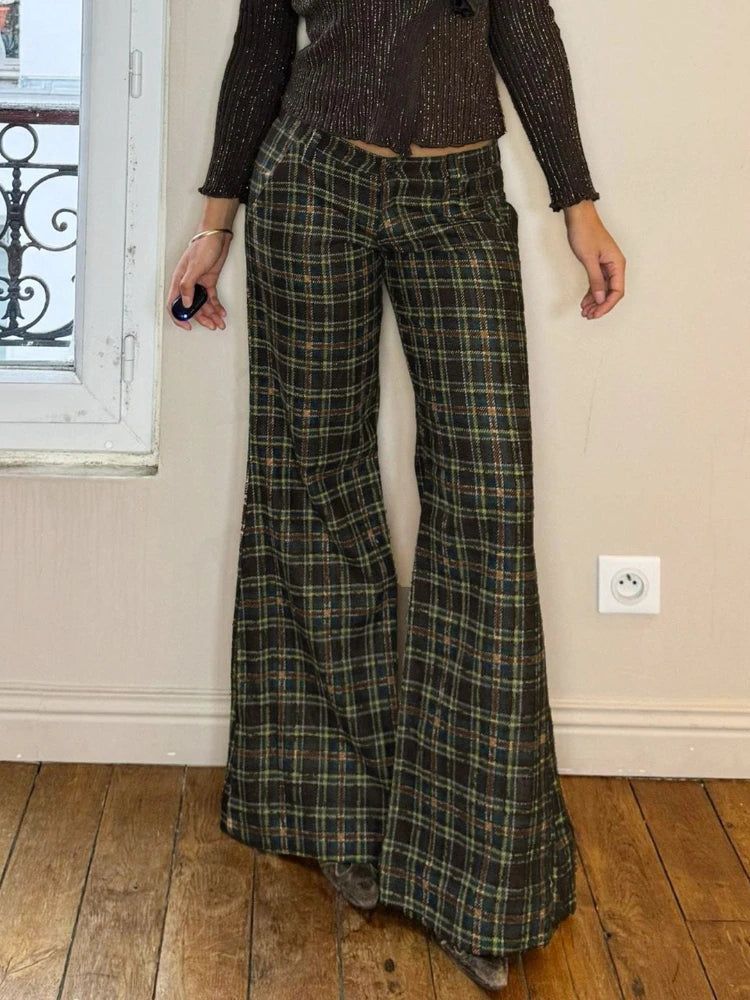 Purpdrank  Women's American Retro Plaid Pants Casual Fashion Wide-Leg Loose Fit Flared Trousers Suitable for Street Lounge Daily Wear