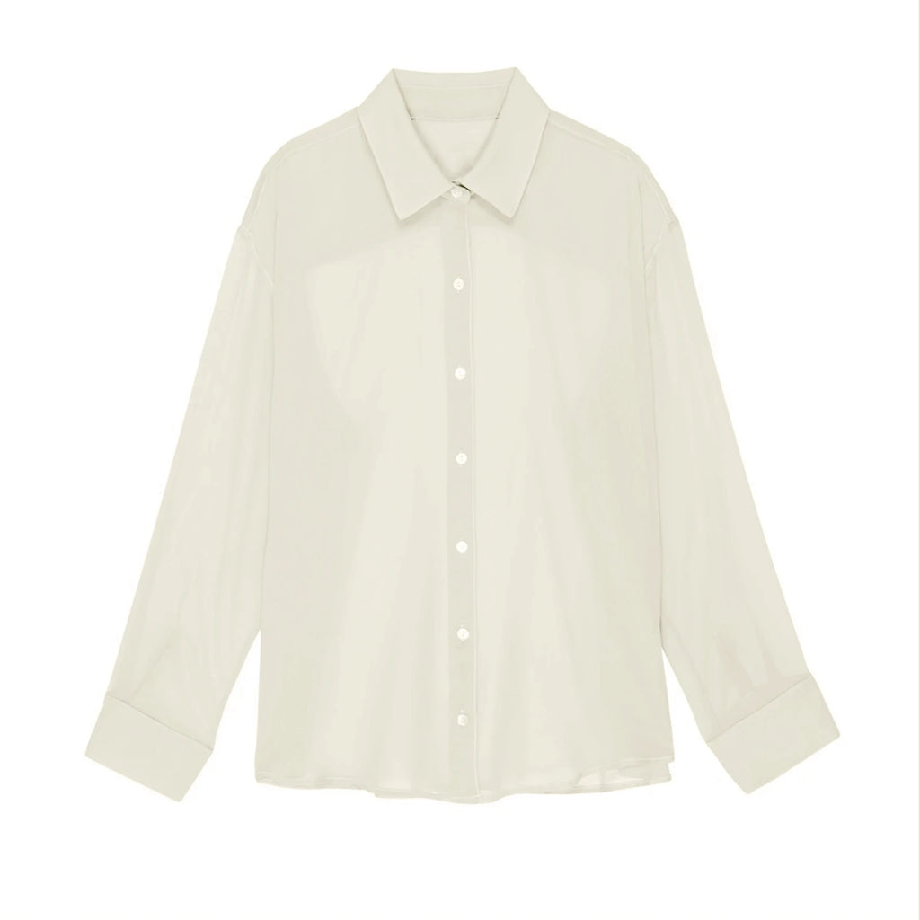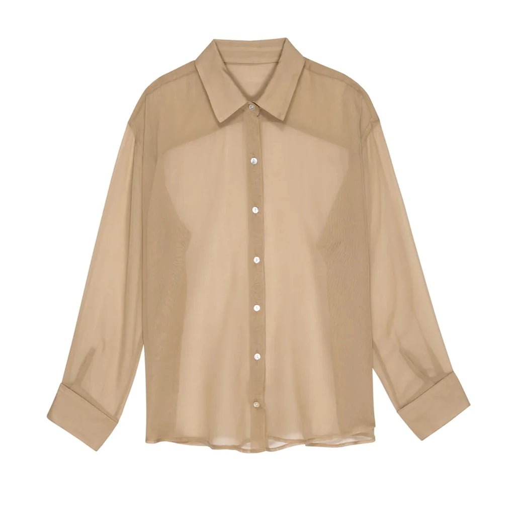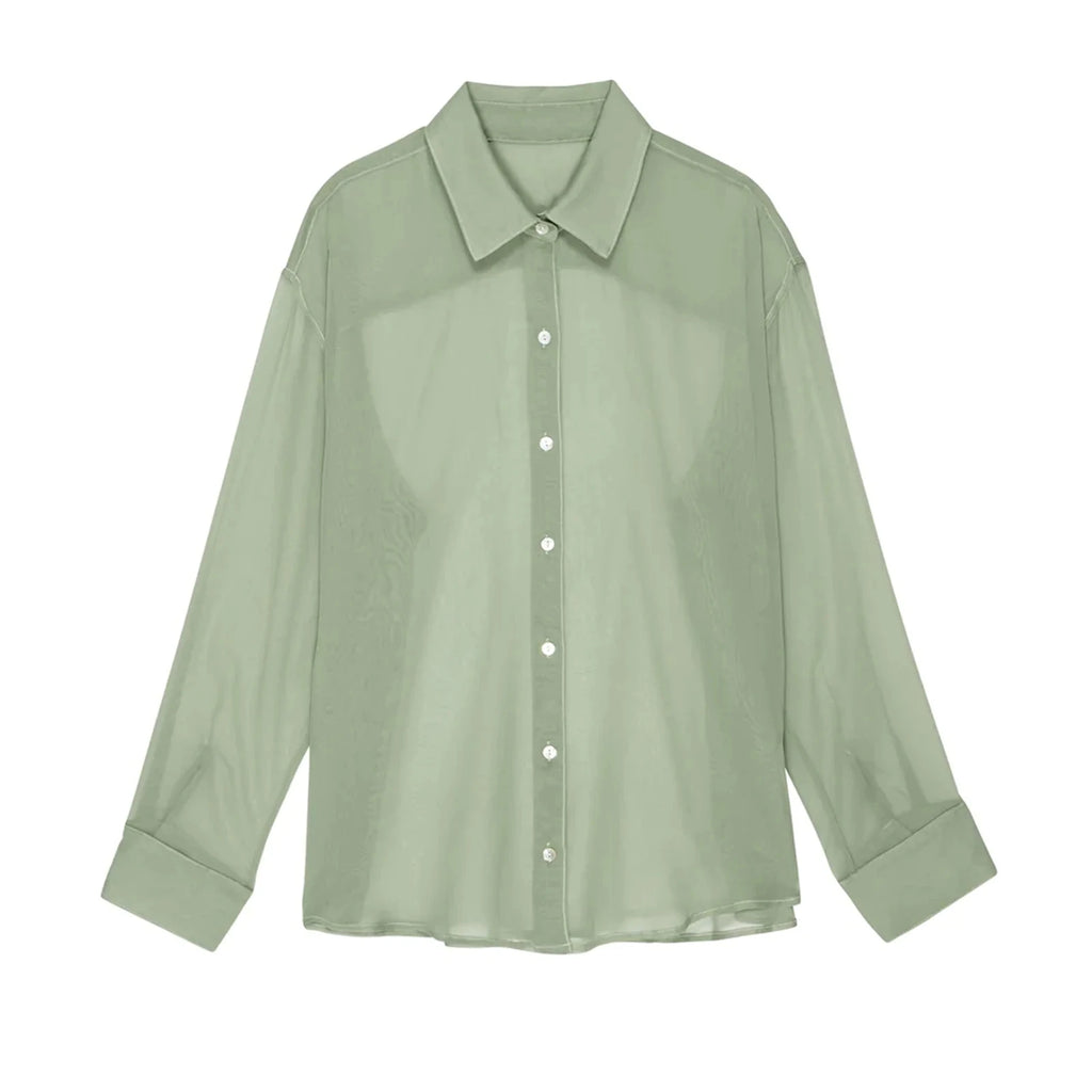 Purpdrank Women's Casual Daily Commuting Shirt Tops See-through Chiffon Comfortable Lapel Long Sleeve Shirt Tops