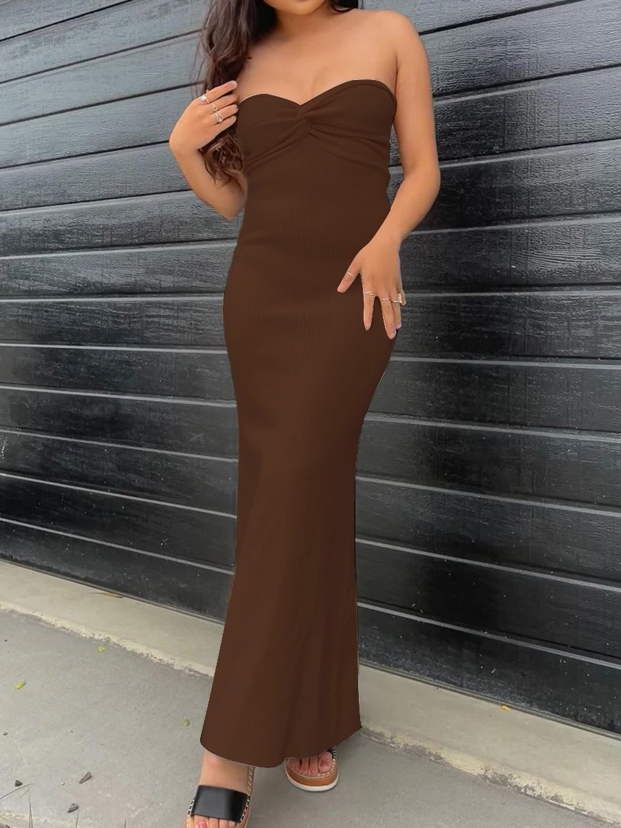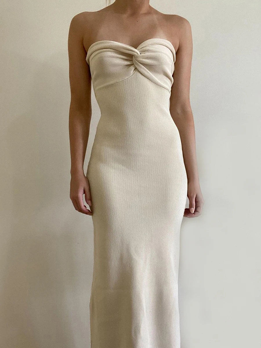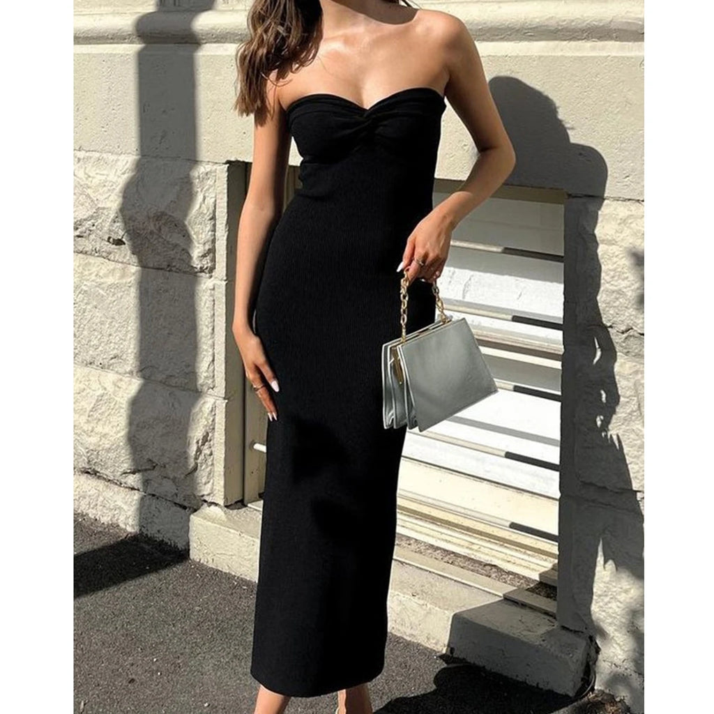 Purpdrank Women's Clothing Summer Trend Slim Dress Solid Color Cross Off Shoulder Design Knit Versatile Elegant Cocktail Dress