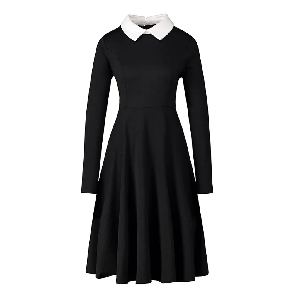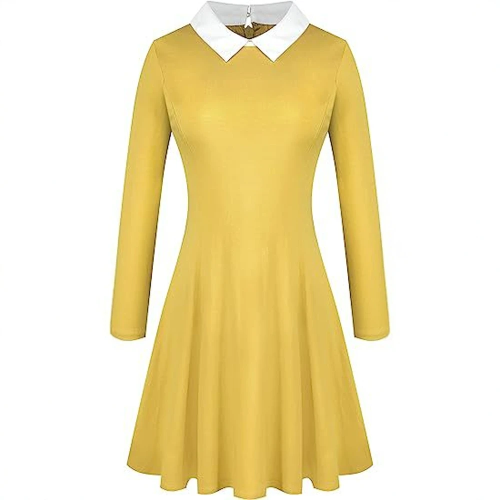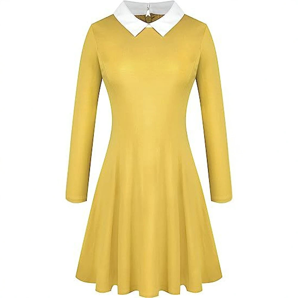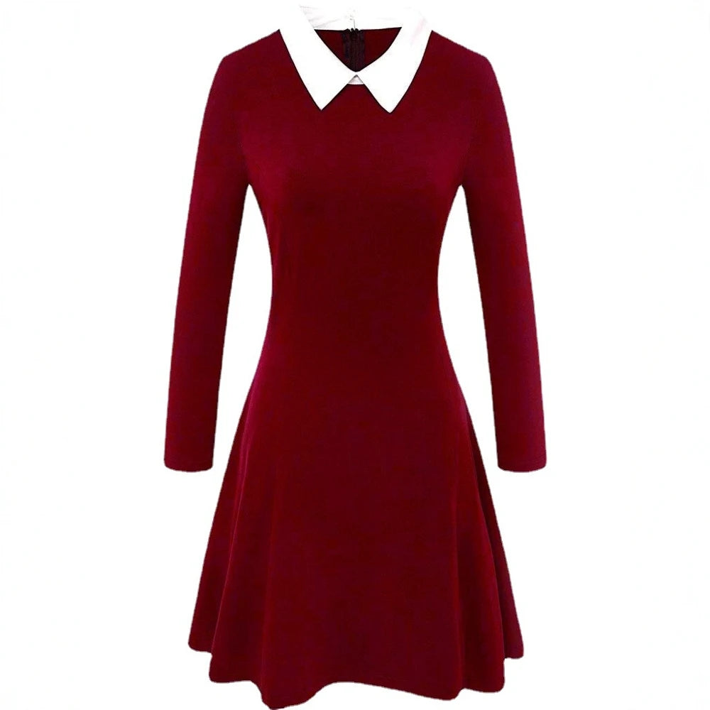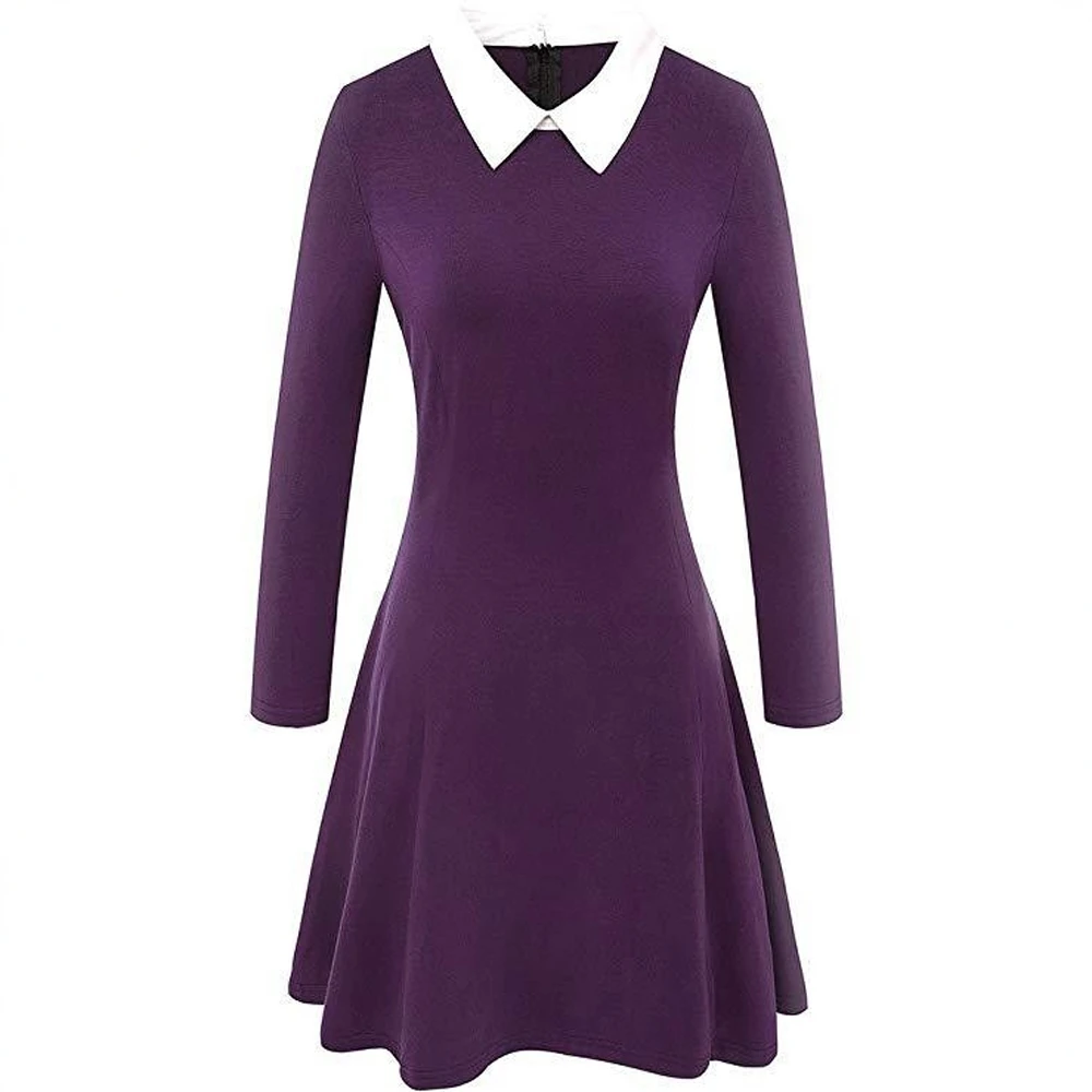 Purpdrank  Women's Dresses Autumn Fitting Slim Simple Contrast Color Long Sleeve Shirt Collar Mini Shift Office Lady Dresses