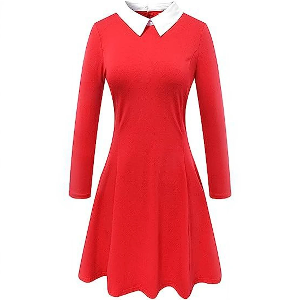 Purpdrank Women's Dresses Autumn Fitting Slim Simple Contrast Color Long Sleeve Shirt Collar Mini Shift Office Lady Dresses