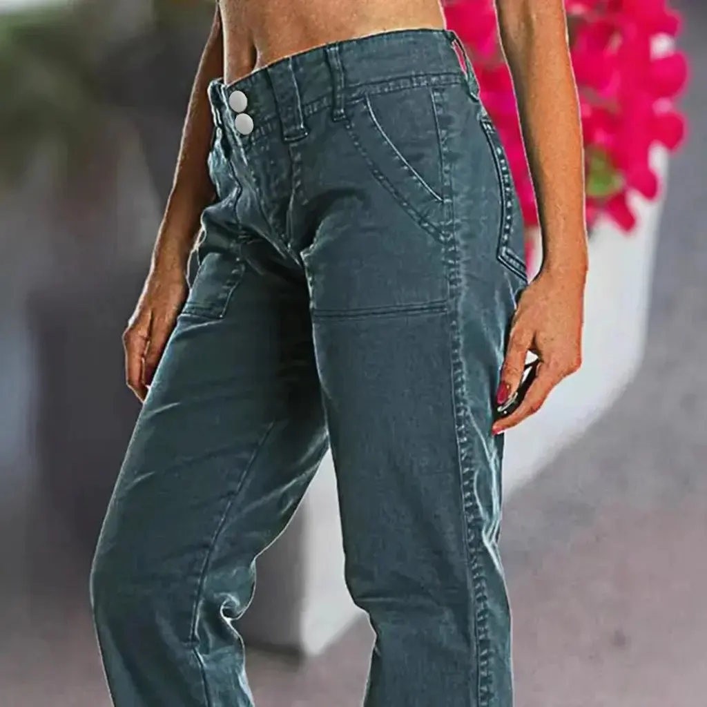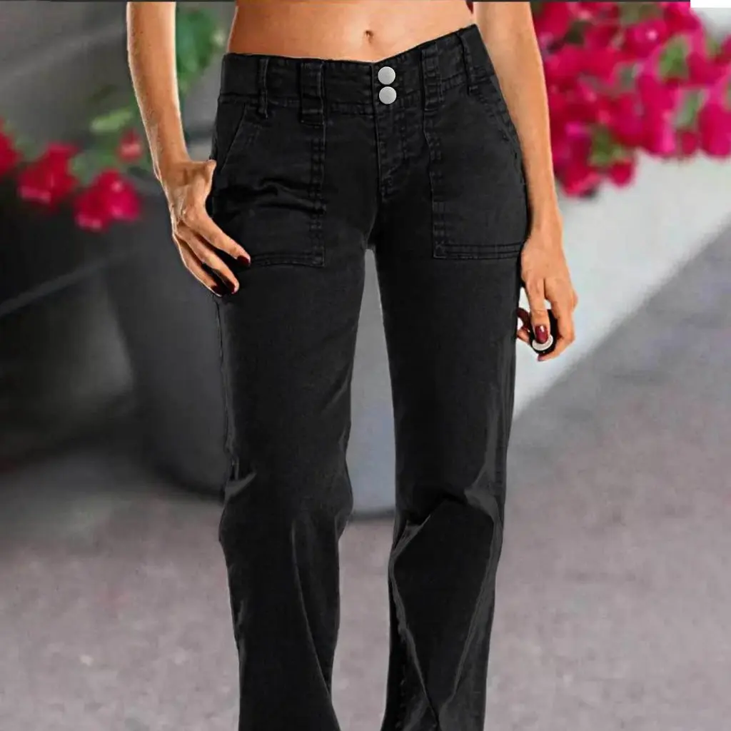 Purpdrank Women's Fashion Denim Trousers Straight-Leg Double Button Detail Style Women's Clothing