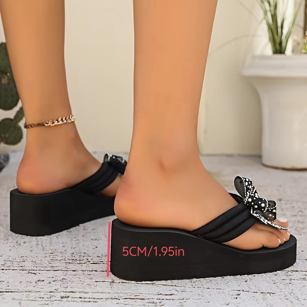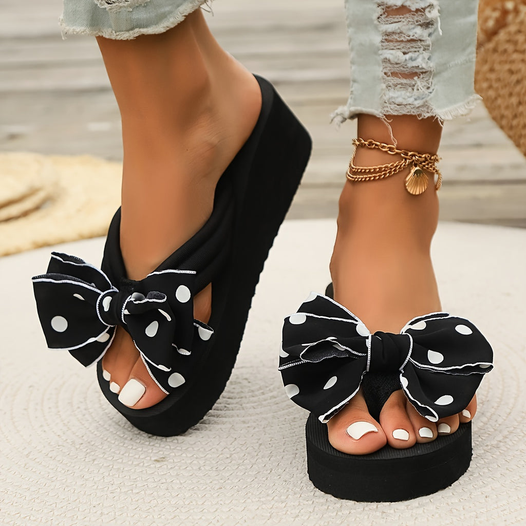 Purpdrank Women's Fashion Platform Flip-Flops With Bow Detail, Comfortable Wedge Summer Slip-On Slides, Thick Sole For Versatile Styling