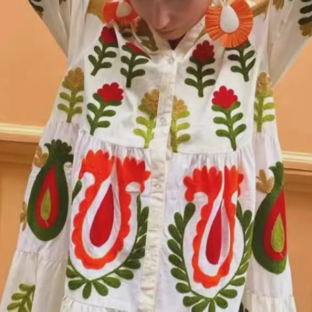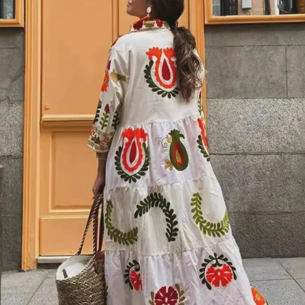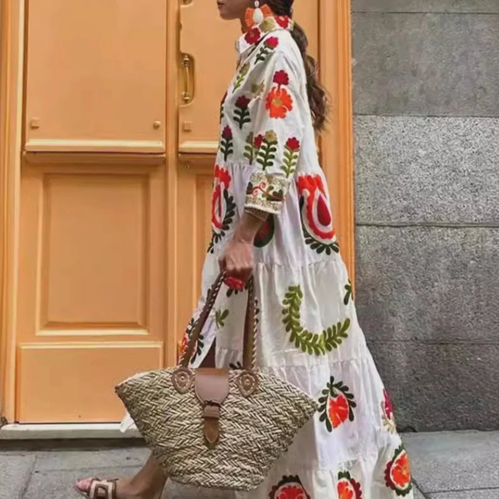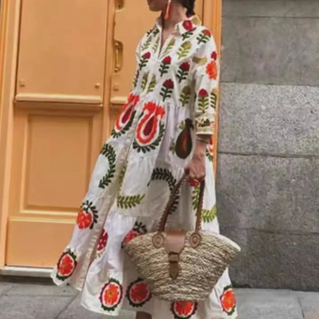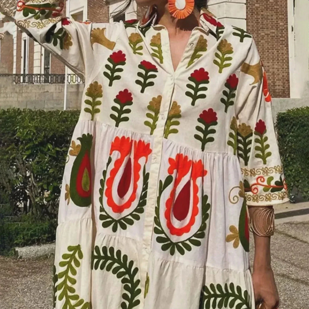 Purpdrank Women's Floral Long Shirt Dress 3/4 Sleeve Lapel Neck Button-up Flowy Loose Dresses