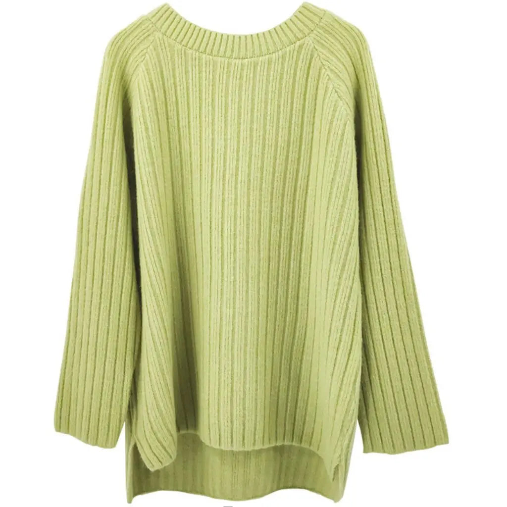 Purpdrank Women's Korean-Style Loose Pullover Sweater Autumn Winter Vertical Strip Solid Color All-match Lazy Style Outer Wear