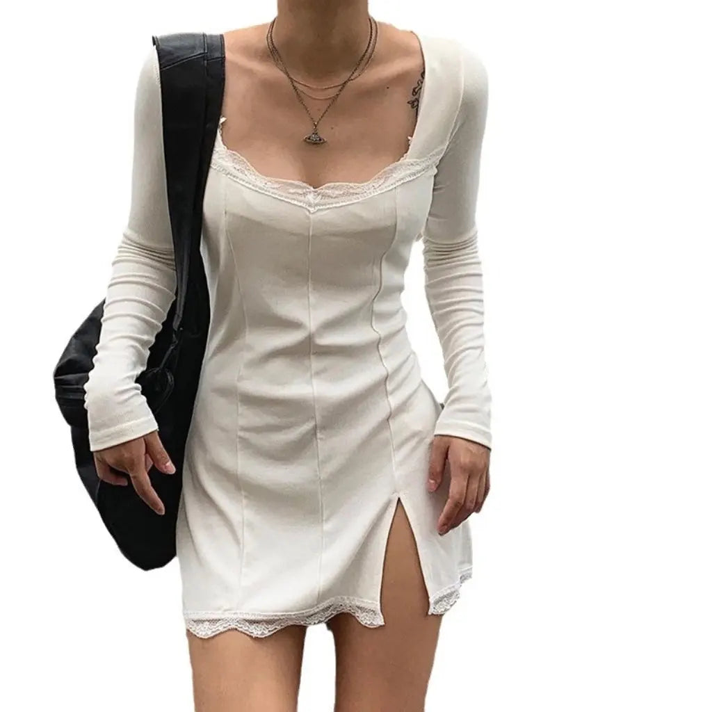 Purpdrank Women's Lace Slit Dress Tight Hip One Piece Skirt European And American Style Spring Summer New Sexy