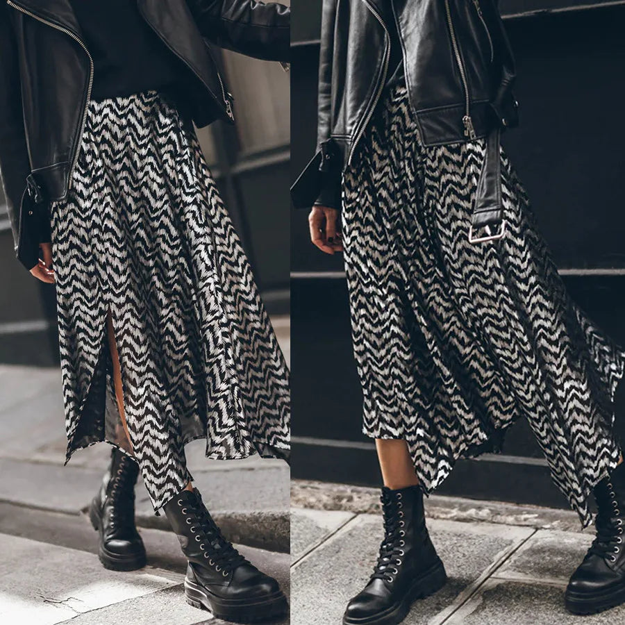 Purpdrank Women's S-XL Size New European and American hot stamping elastic waist skirt INS casual loose fitting women's skirt