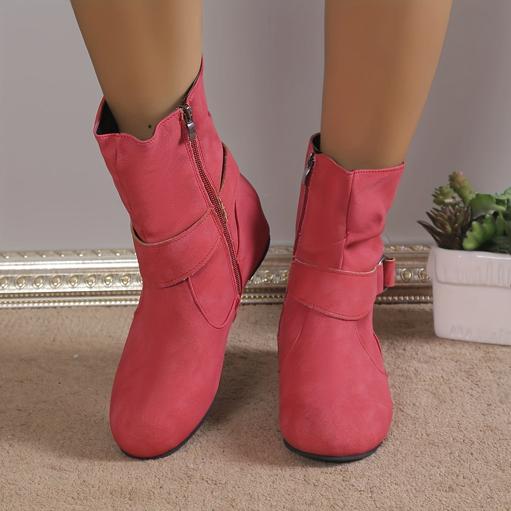 Purpdrank Women's Slouchy Ankle Boots, Solid Color Round Toe Side Zipper Short Boots, Comfortable Flat Boots