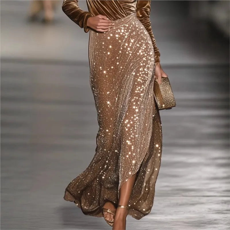 Purpdrank Women's Style Velvet Patchwork Sequins Luxury Long Dress American Elegant Bodycon Prom Dress Autumn Winter Party Evening Dress