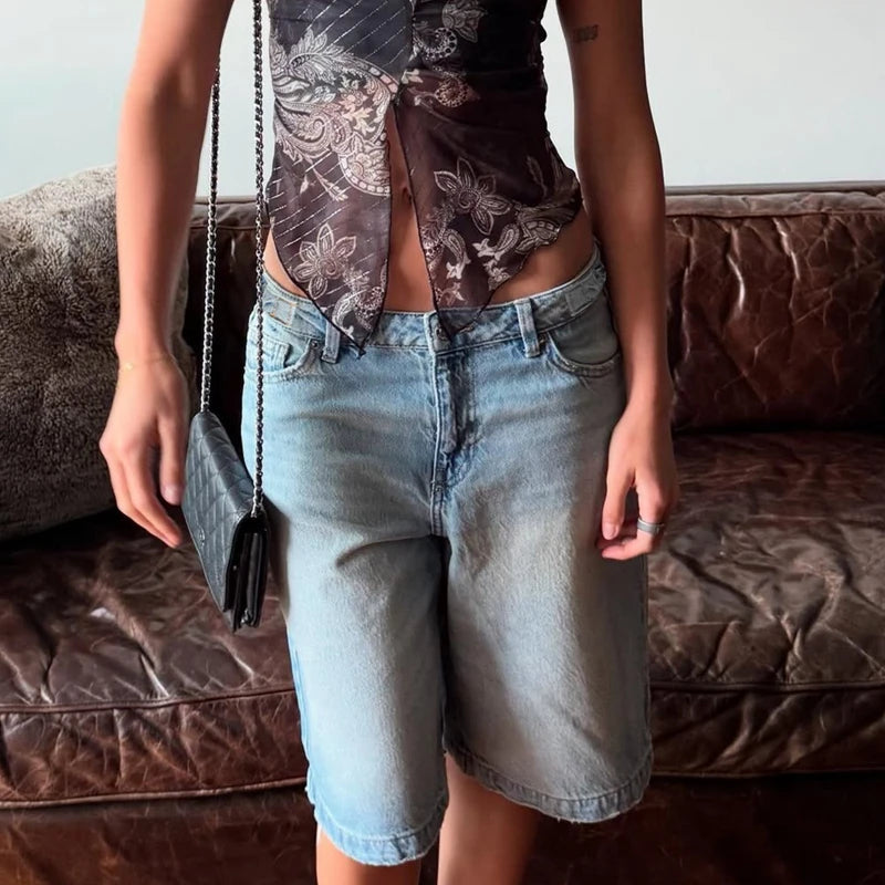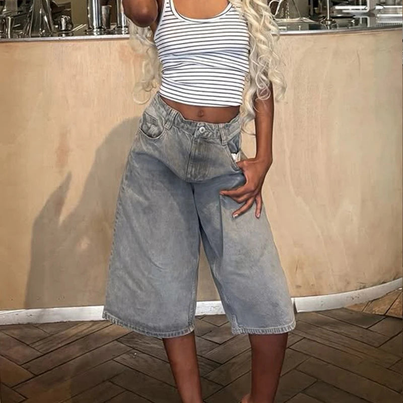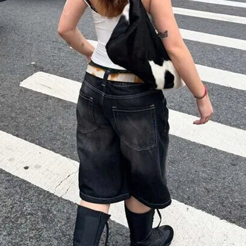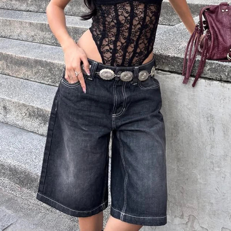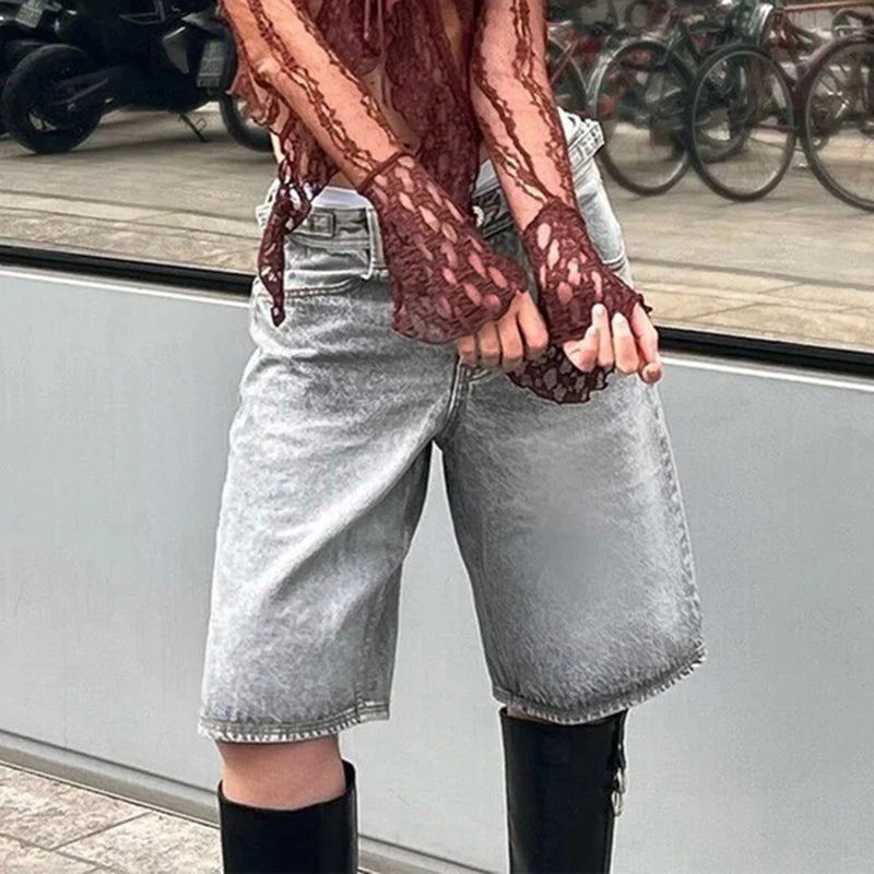 Purpdrank Y2k Bermuda Denim Shorts Low Waist Loose Fit Baggy Jorts with Pockets Summer Vintage Wide Leg Jeans Cyber Grunge Streetwear