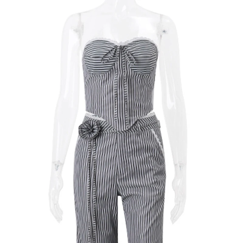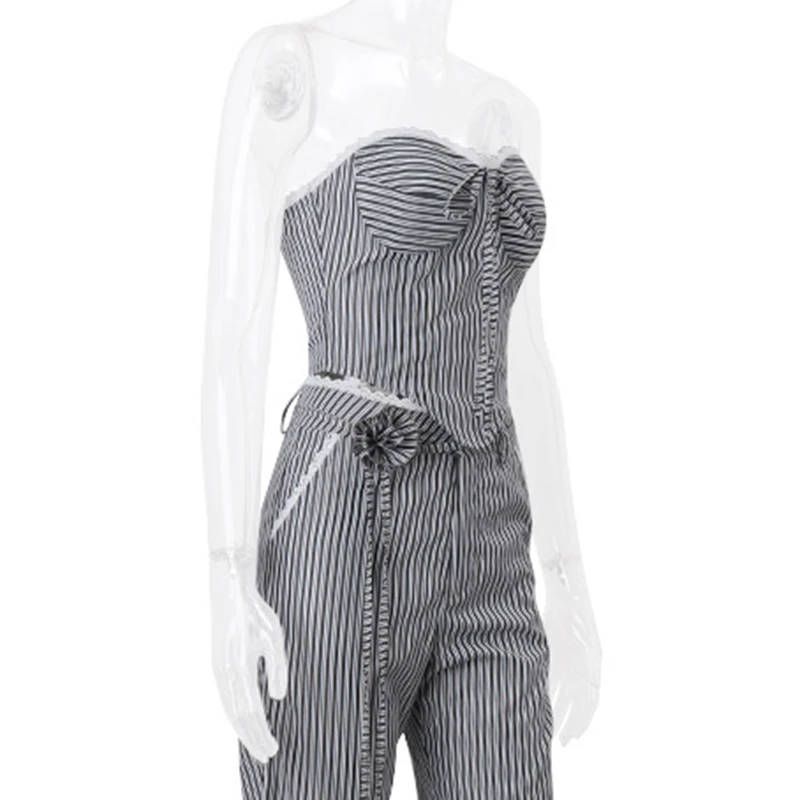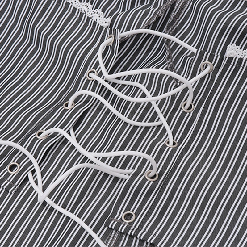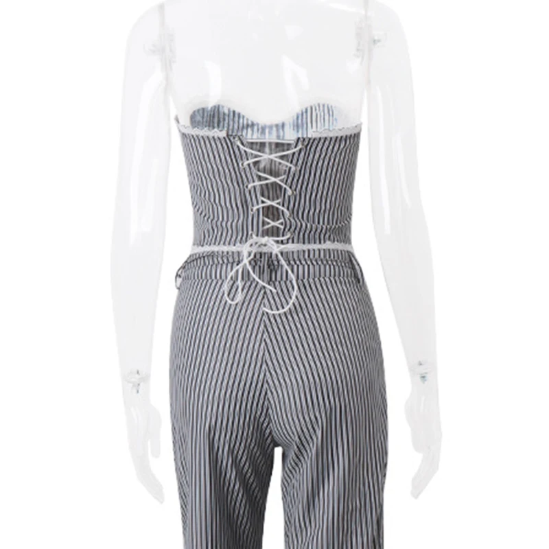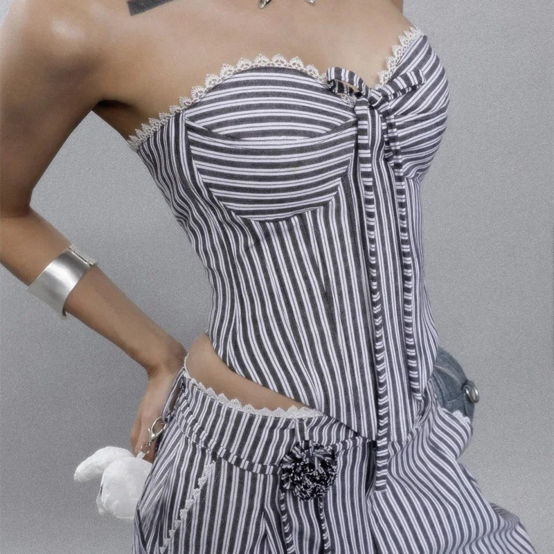 Purpdrank y2k Tube Top Women Summer Striped Lace Trim Off Shoulder Strapless Open Back Cross Tie-Up T Shirt Vest 2000s Streetwear