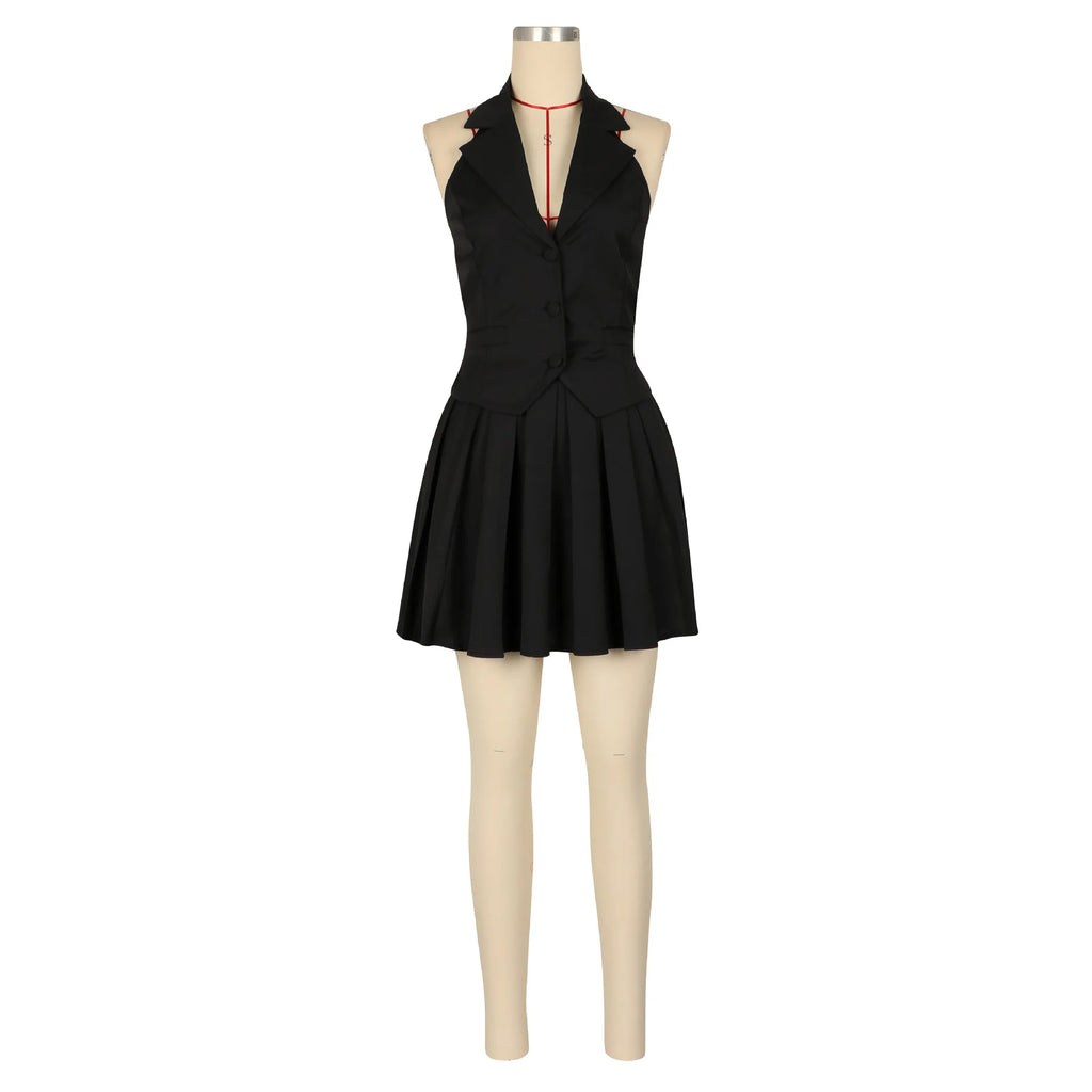 Purpdrank Y2K Two Piece Women Office Dress Sets 2025 Summer Fashion Notched Sexy Backless Sleevelss Vests and Mini Pleated Skirts Outfits