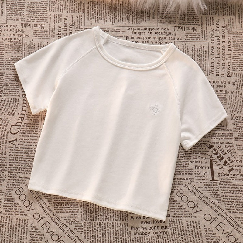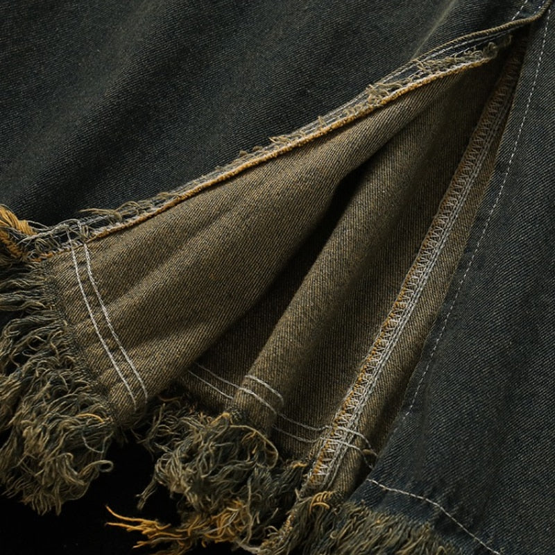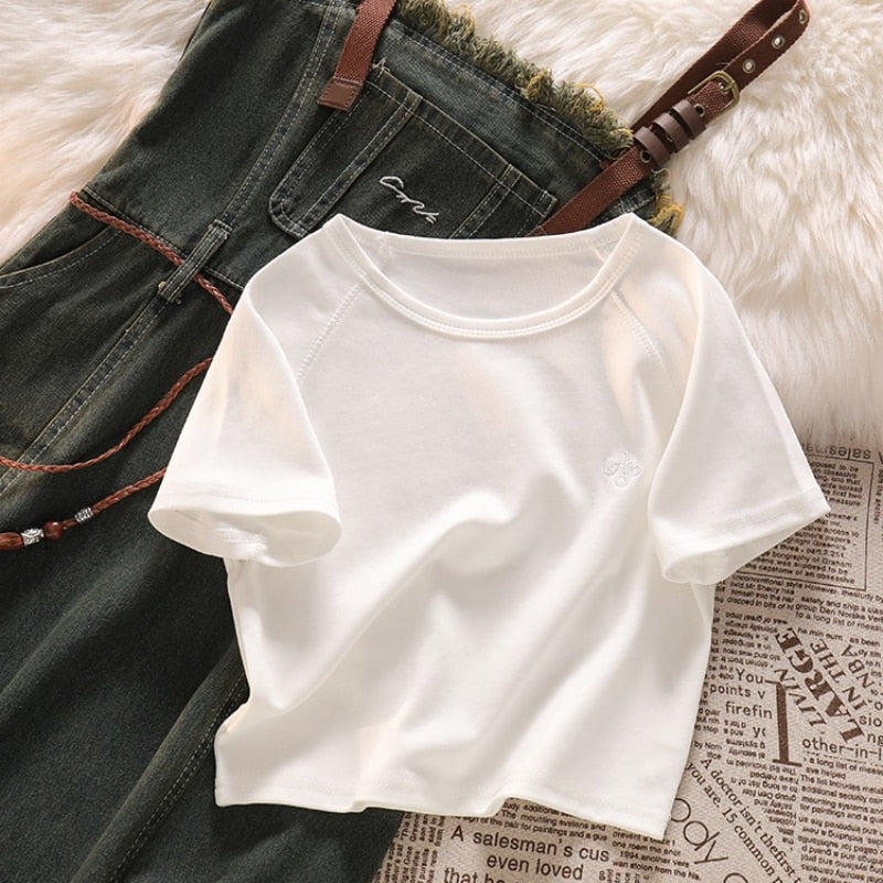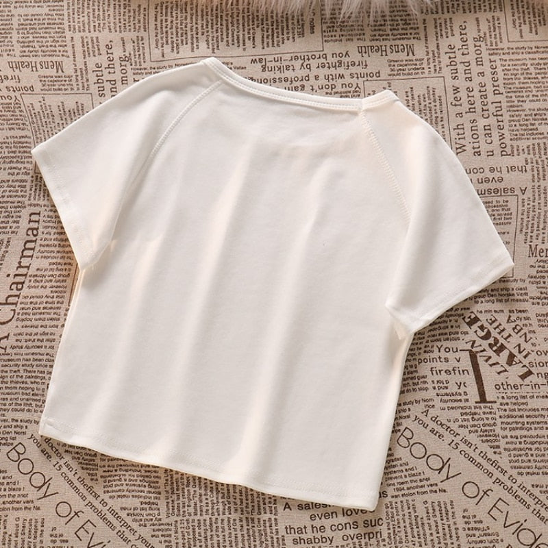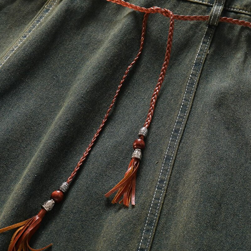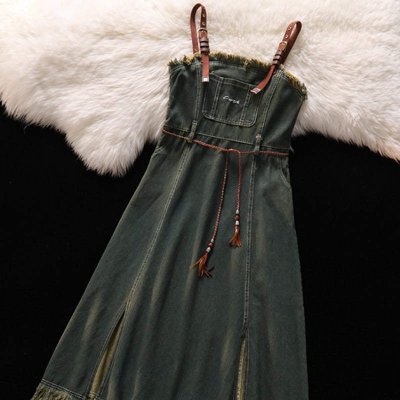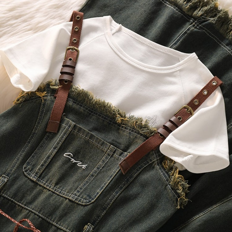 Purpdrank - Spicy Girl Short Cut Open Navel Short Sleeve T-shirt Women's Patchwork Tassel Denim Strap Dress High Street Set/single Pcs