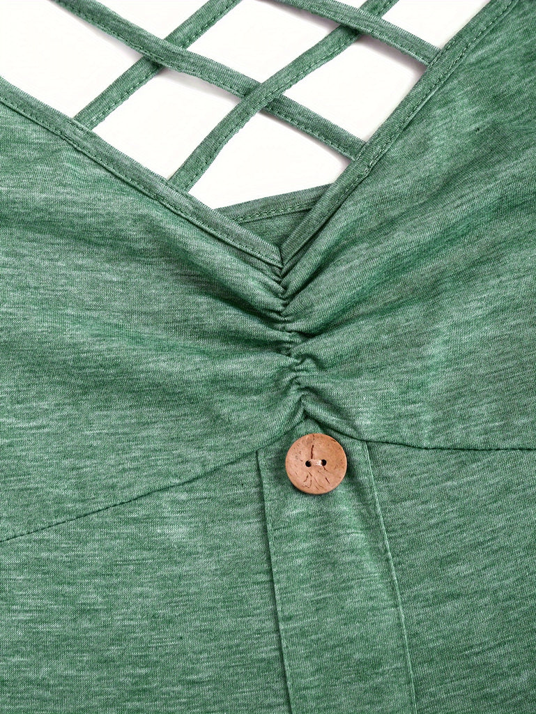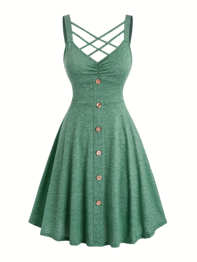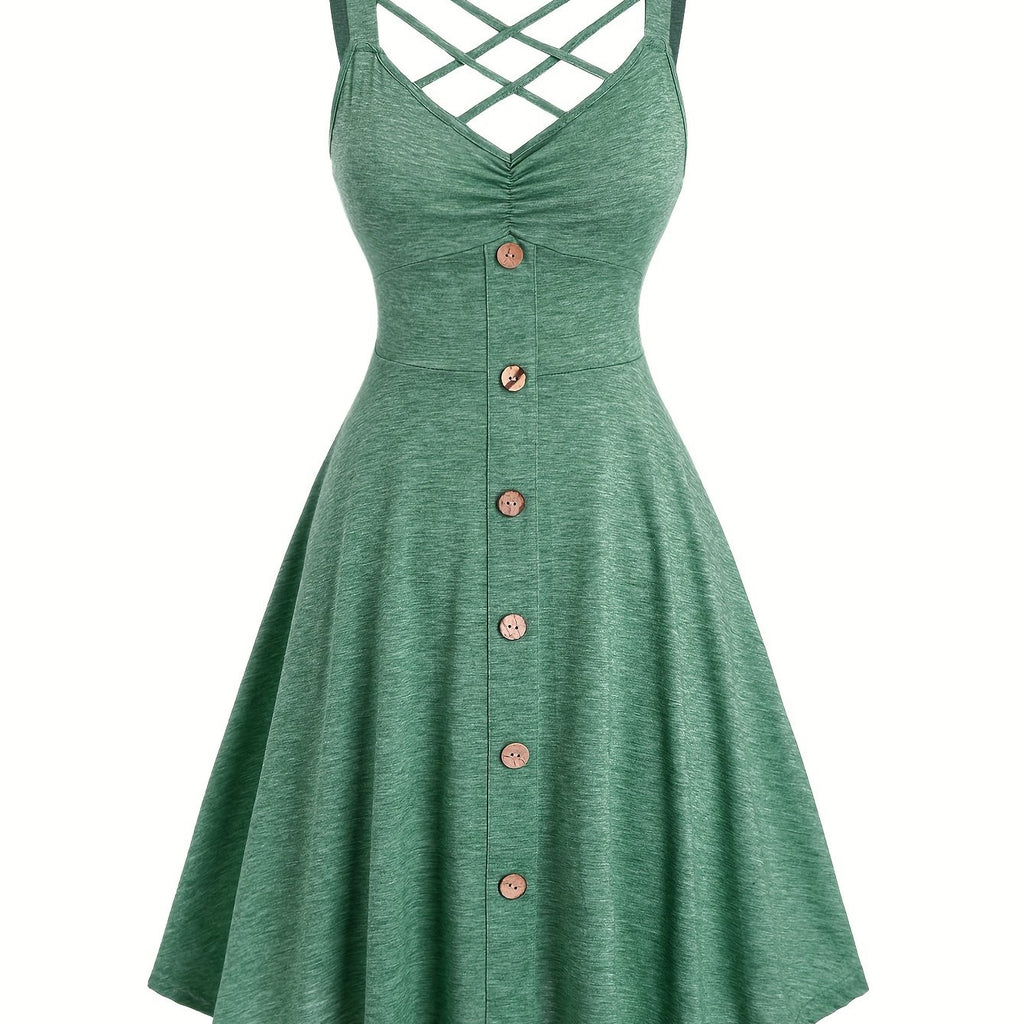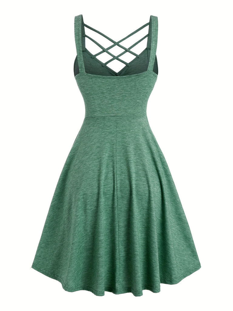Vibrant Solid Color Cross Front A-line Dress - Sleeveless, V-Neck, Mid-Elastic Polyester Fabric, Machine Washable, Perfect for Spring and Summer - Casual, Comfortable, and Stylish Womens Clothing
