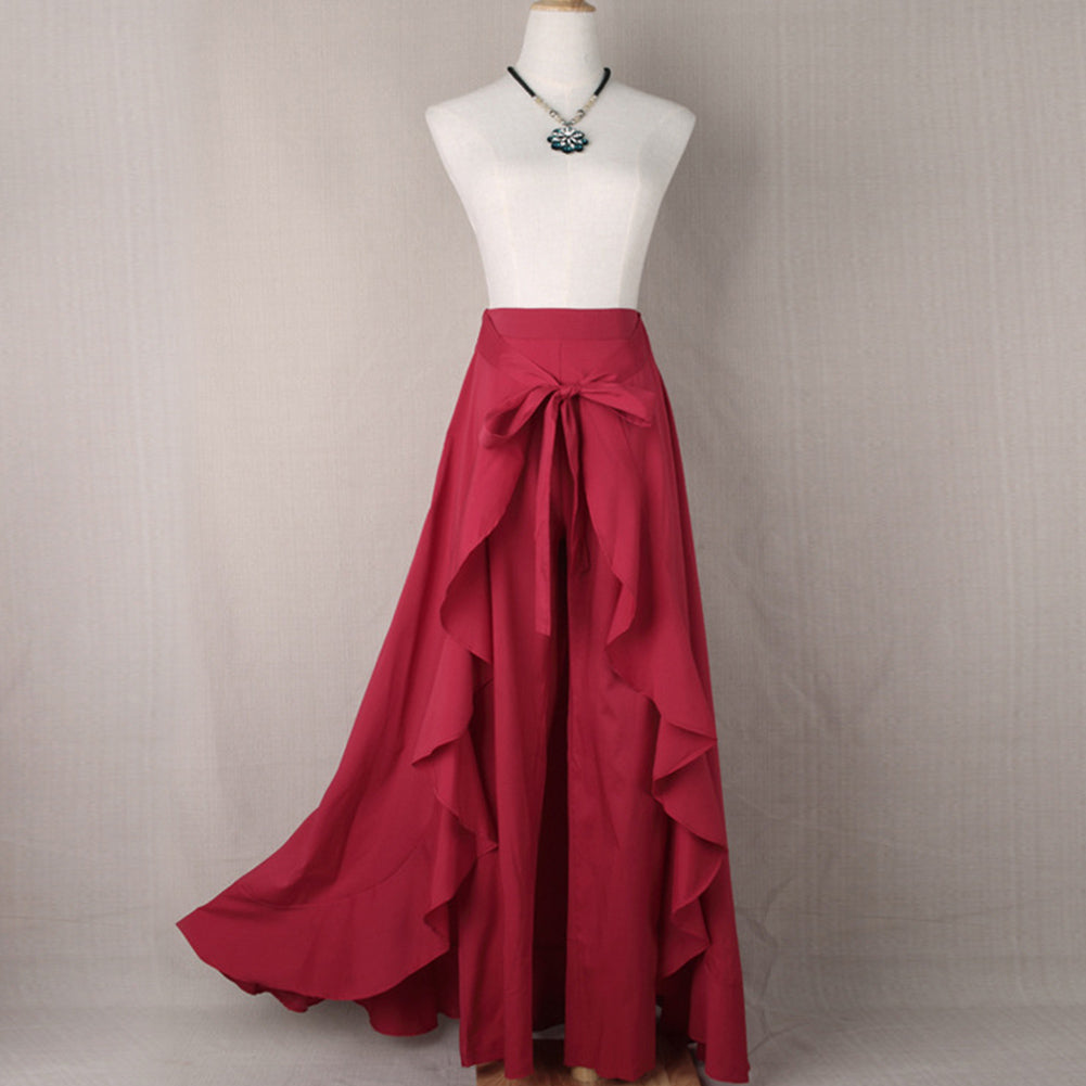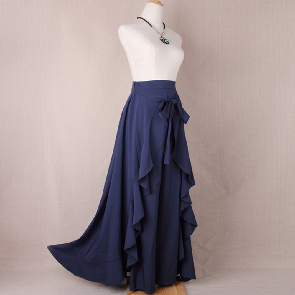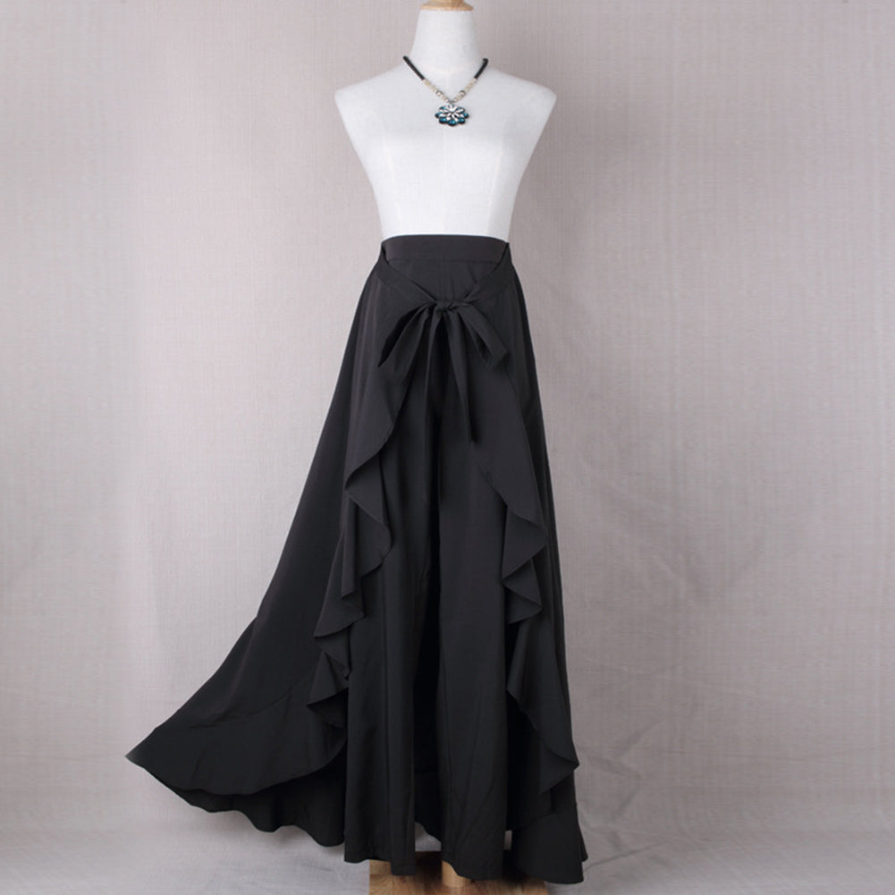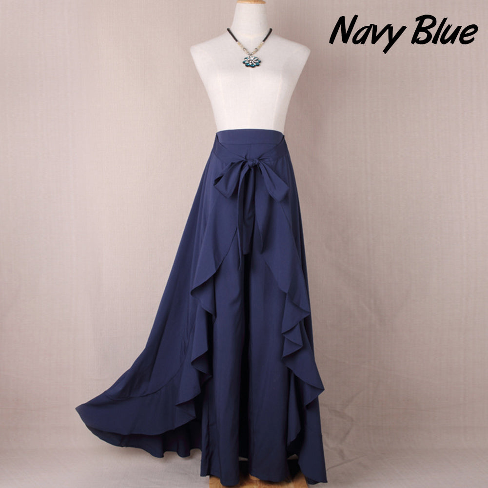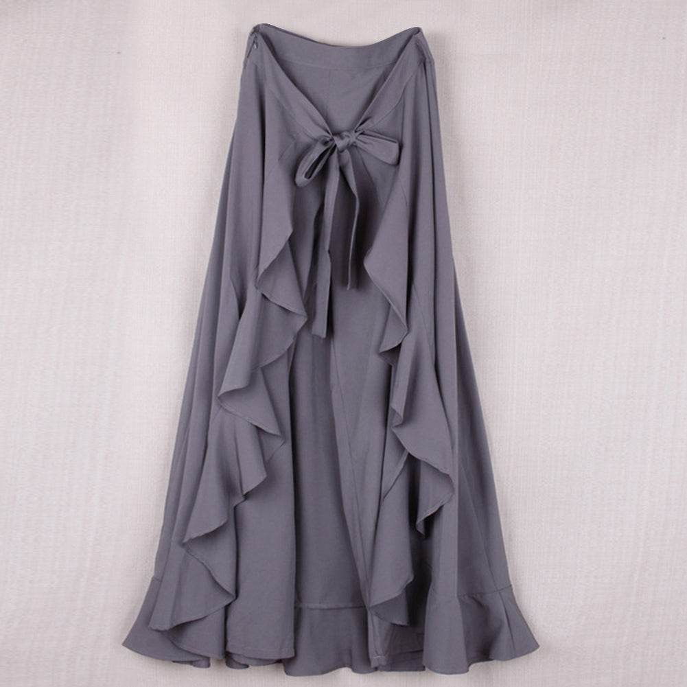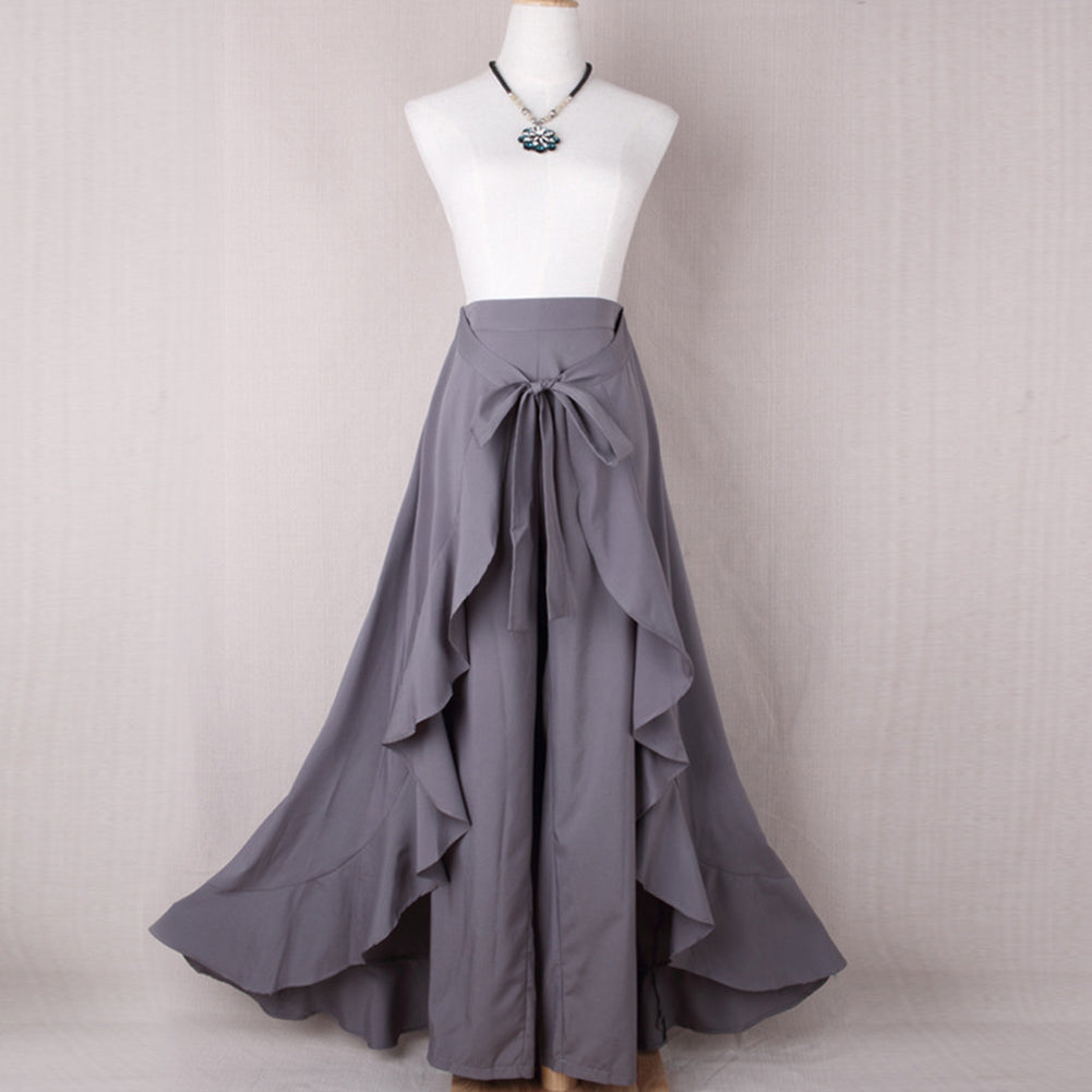Purpdrank - Women Chiffon Palazzo Pants Tie-Waist Solid Ruffle Hem Cargo Pants Skirts Summer Elegant Loose Irregular Wide Leg Long Trousers