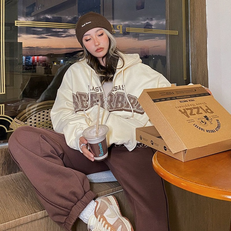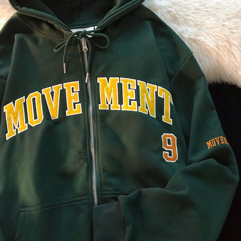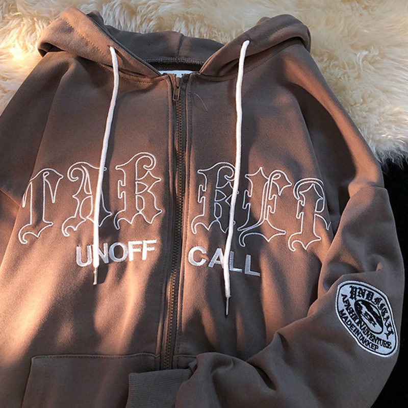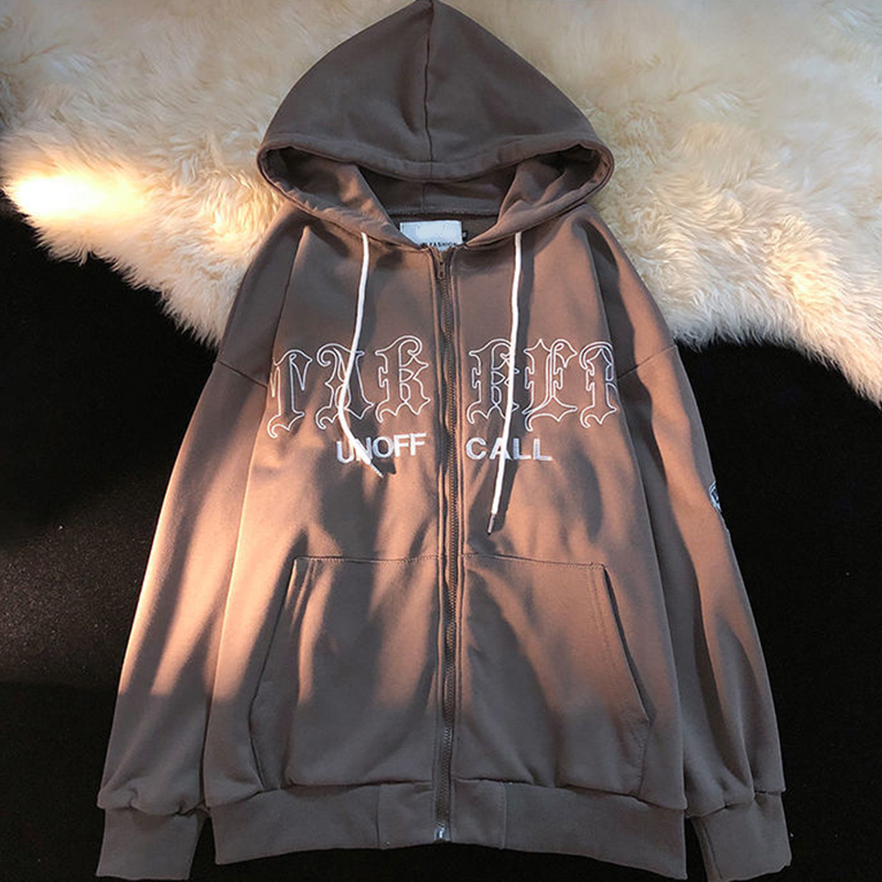 Purpdrank - Women Retro Letter Print Hoodies Y2K Autumn Harajuku Long Sleeve Hooded Sweatshirt Female Gothic Zip Up Oversized Hoodie Jacket
