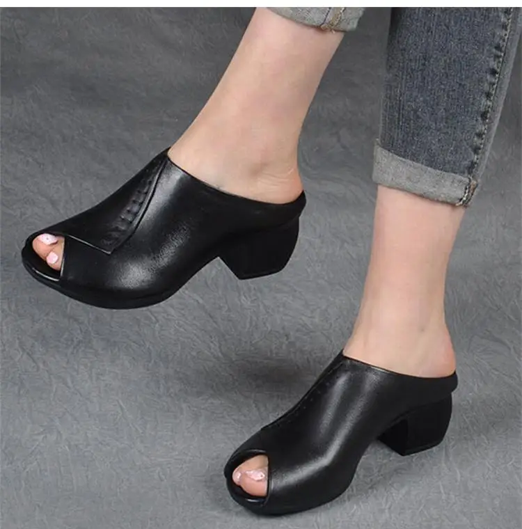Purpdrank - Women Sandals 2023 Elegant Women Heels Sandals Medium Heel Zapatos Mujer Summer Sandals Women Mules Ladies Shoes Summer Footwear