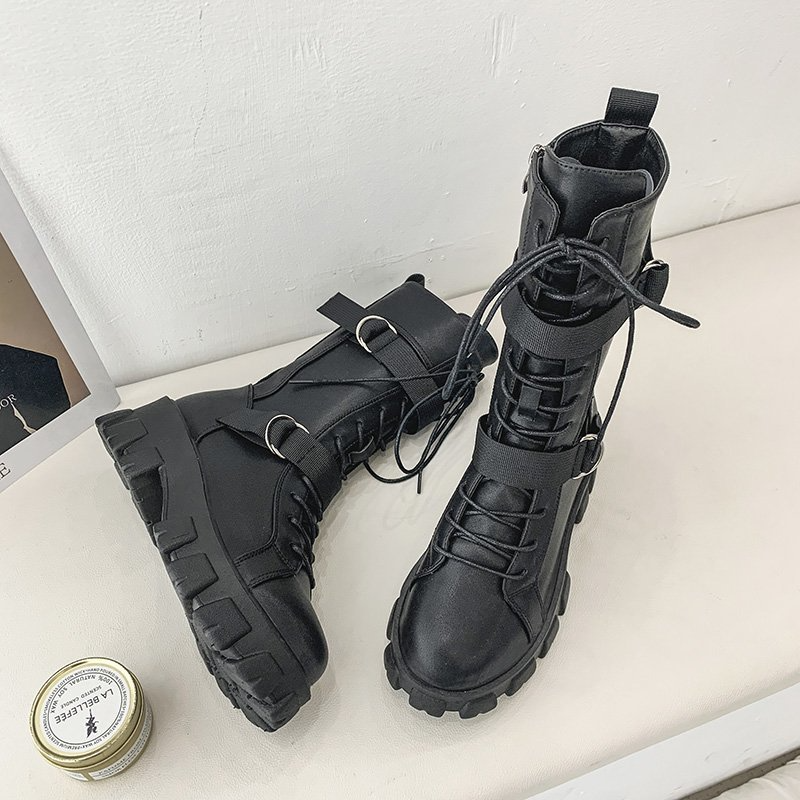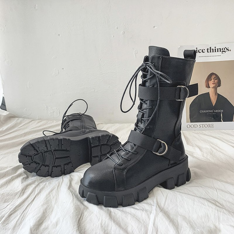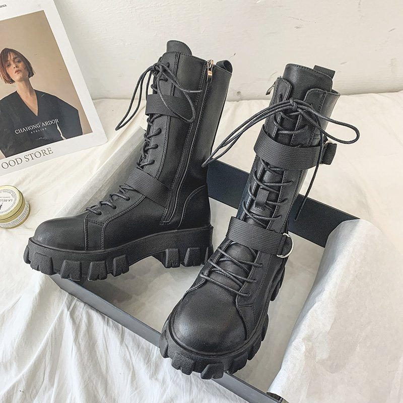 Purpdrank - Women's Shoes New Spring Style Platform Comfortable Boots Zipper Casual Mid-Calf Round Toe Flat with Boots Femmes Bottes