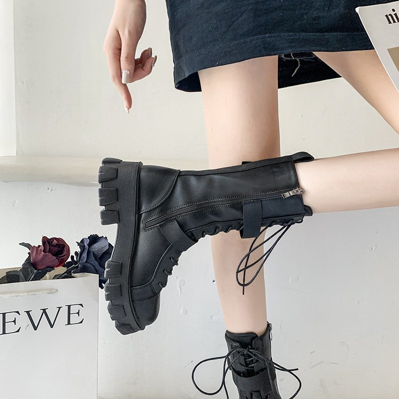Women's Shoes New Spring Style Platform Comfortable Boots Zipper Casual Mid-Calf Round Toe Flat with Boots Femmes Bottes